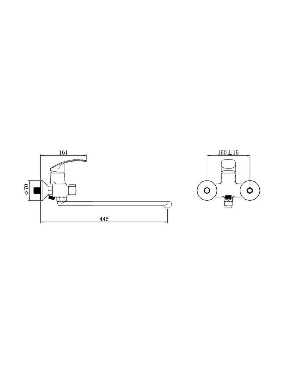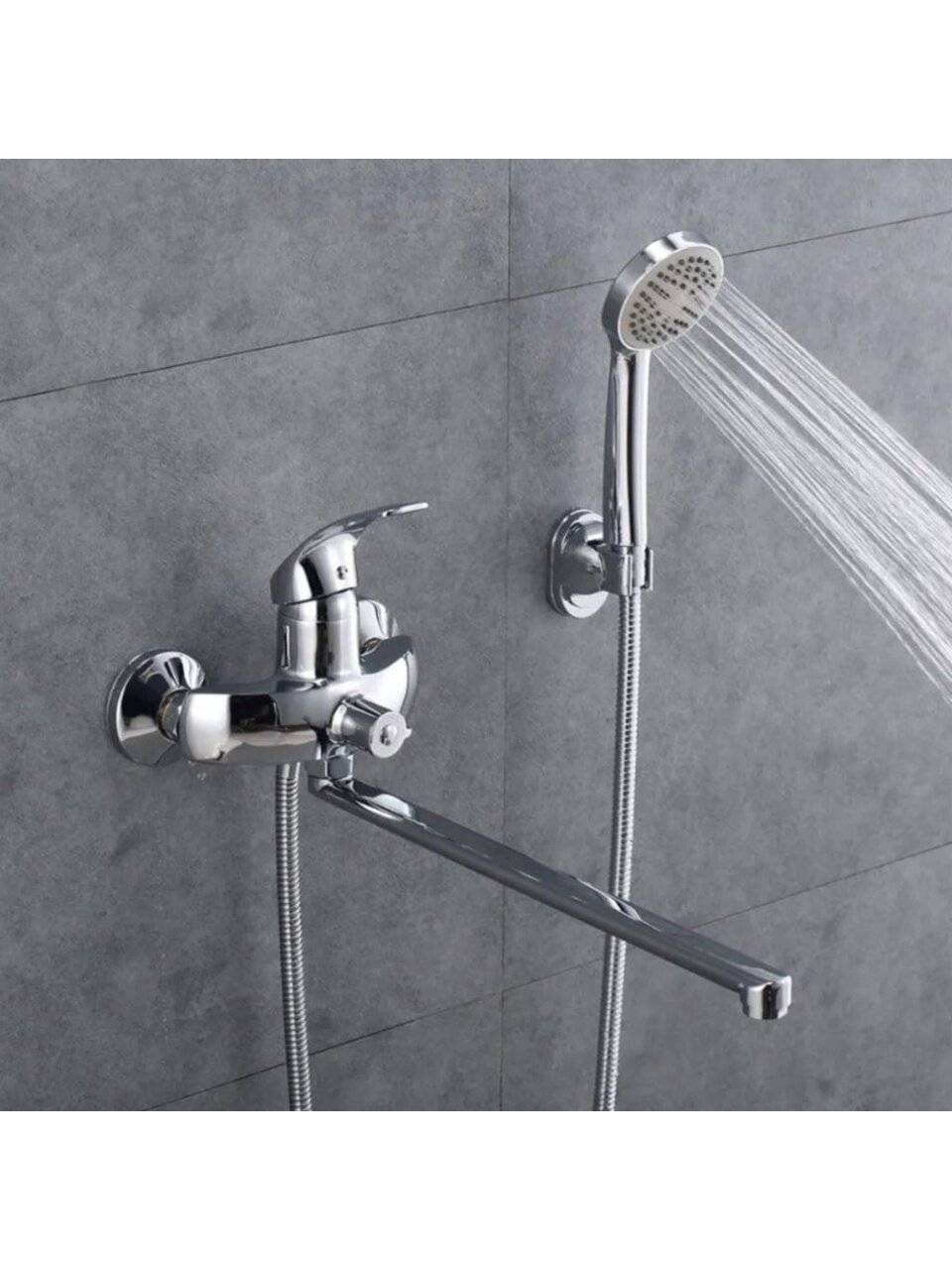 - Параметры: Длинный поворотный излив 40 см, цинковый сплав корпуса, межосевое расстояние 150 мм — подходит для стандартных ванн