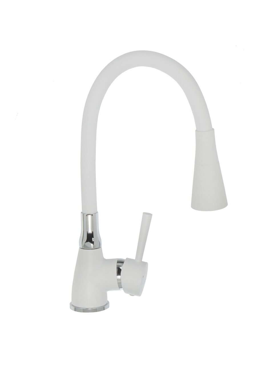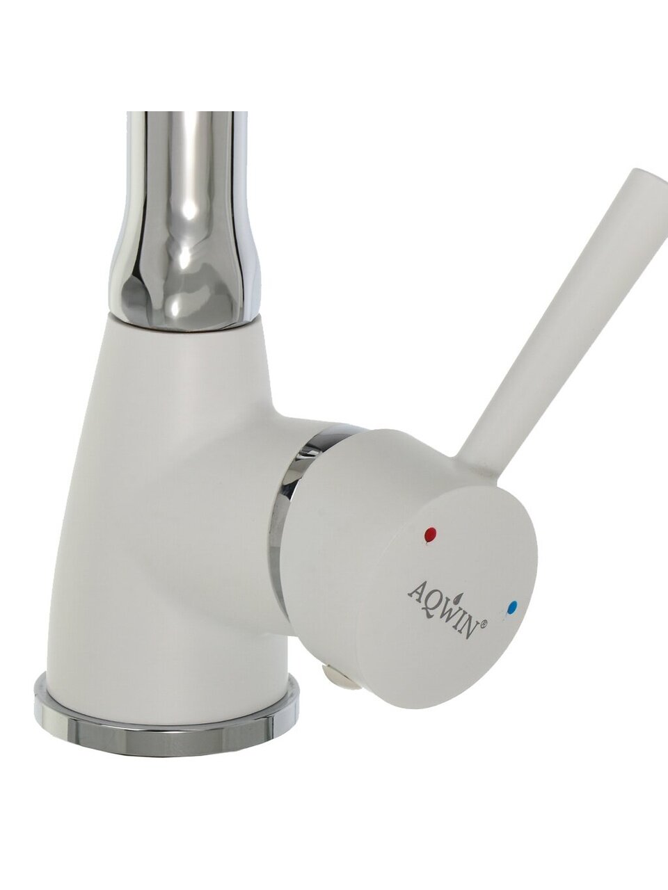 Гибкий кухонный смеситель Aqwin A36284-7 — стильный белый вариант с керамическим картриджем и защитой от излома для современной кухни.