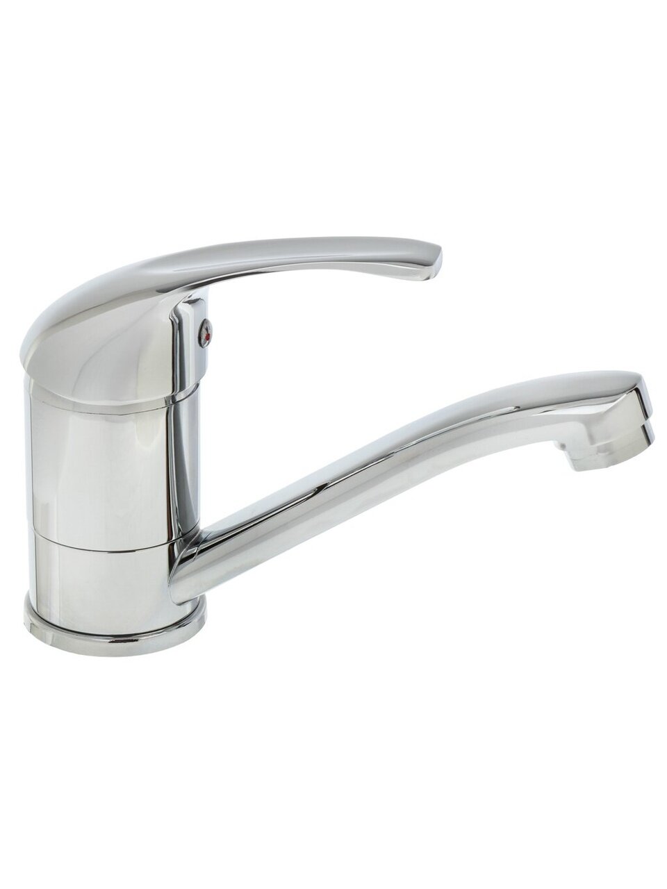 - Корпус из цинкового сплава, глянцевая хромированная поверхность, средний излив 12 см — оптимально для стандартных раковин