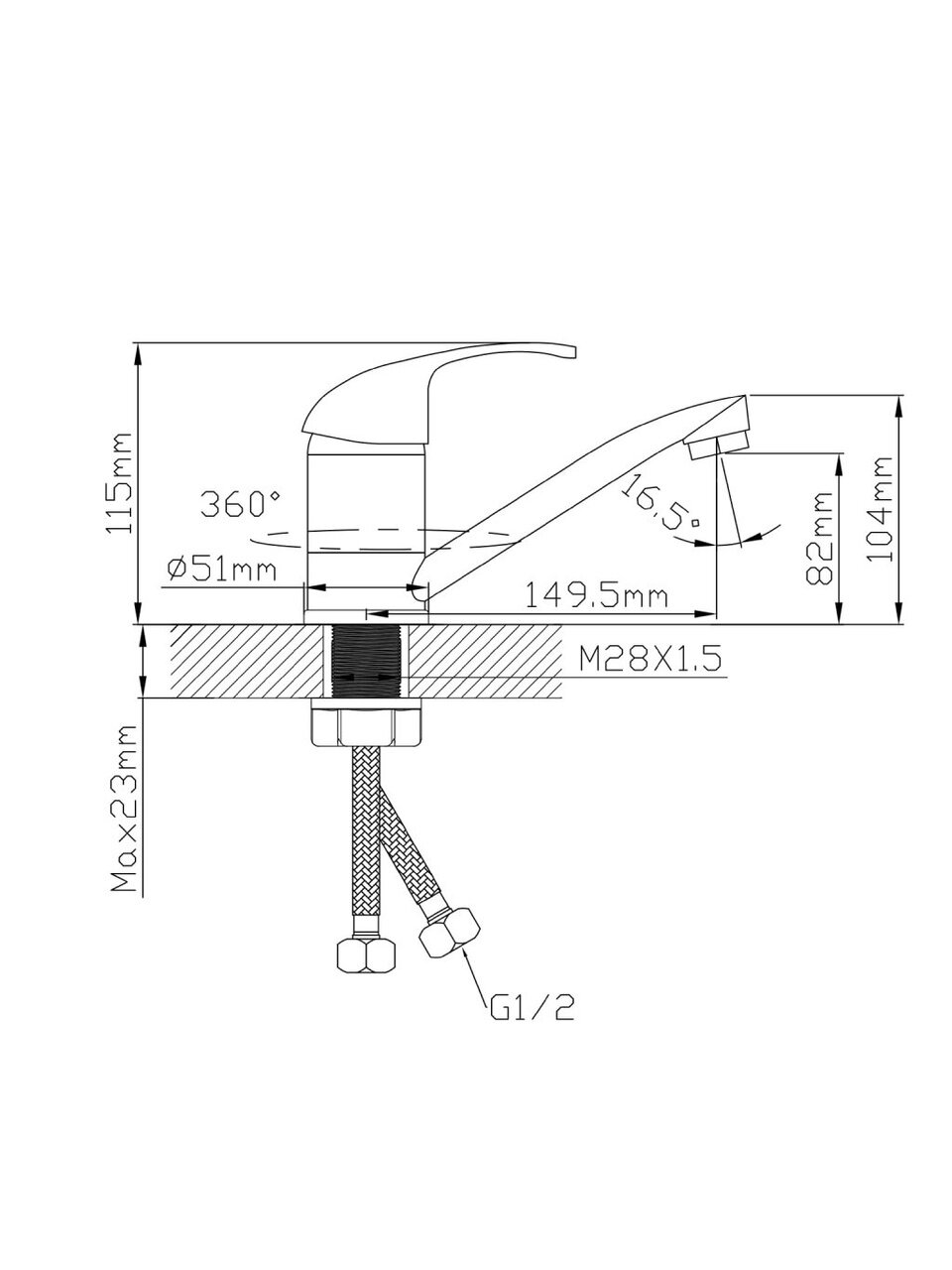 - Универсальный монтаж (1 отверстие, гибкая подводка) — легко устанавливать дома, на даче или в съемном жилье