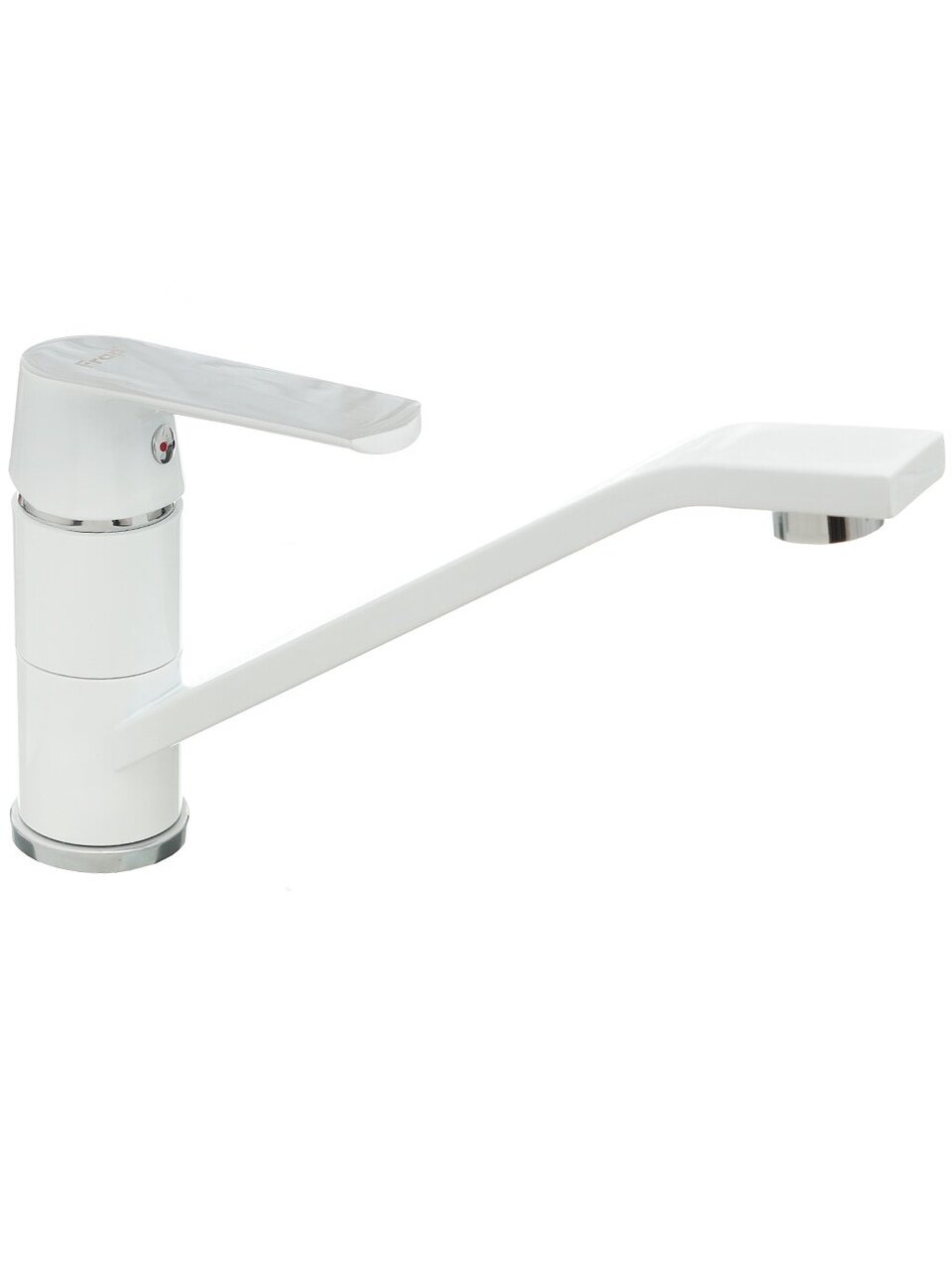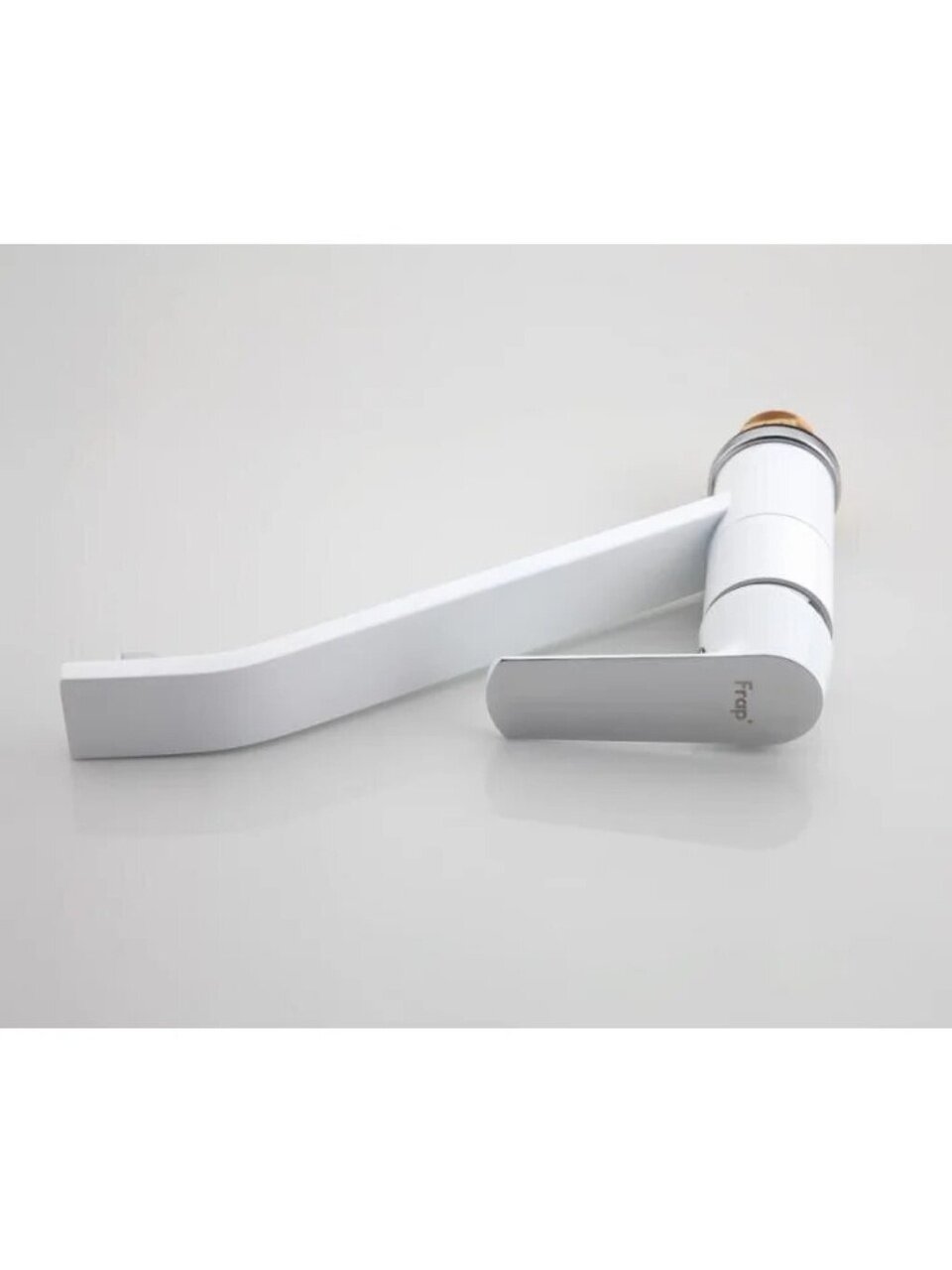 Смеситель для кухни Frap F4931: белый латунный корпус, керамический картридж, поворотный излив 18,3 см — стиль и надежность для современной кухни.