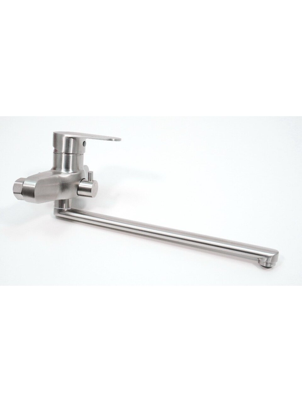 - Удобный длинный излив (межосевое расстояние 150 мм) — подходит для стандартных ванн, монтаж на 2 отверстия