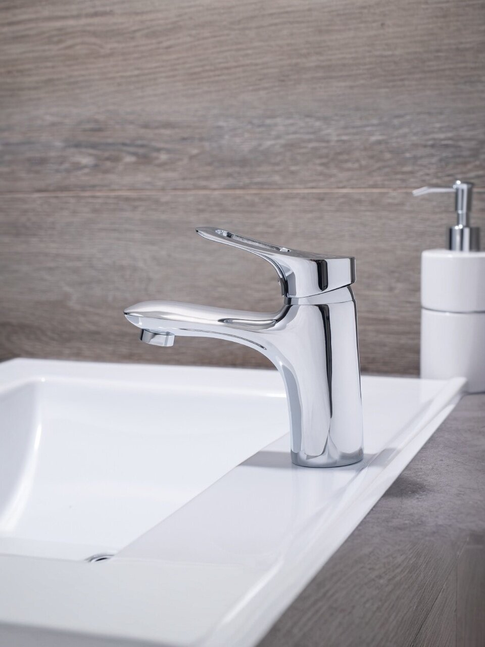 Смеситель для раковины РМС SL120-001F — это современное решение для тех, кто ищет, какой смеситель выбрать для умывальника без лишних переплат. Благодаря монолитному корпусу из цинкового сплава и глянцевому хромированному покрытию модель устойчива к влаге и механическим повреждениям. Рычажное управление и керамический картридж обеспечивают точную регулировку температуры и напора воды, что выгодно отличает этот вариант от аналогов с устаревшими вентильными механизмами.