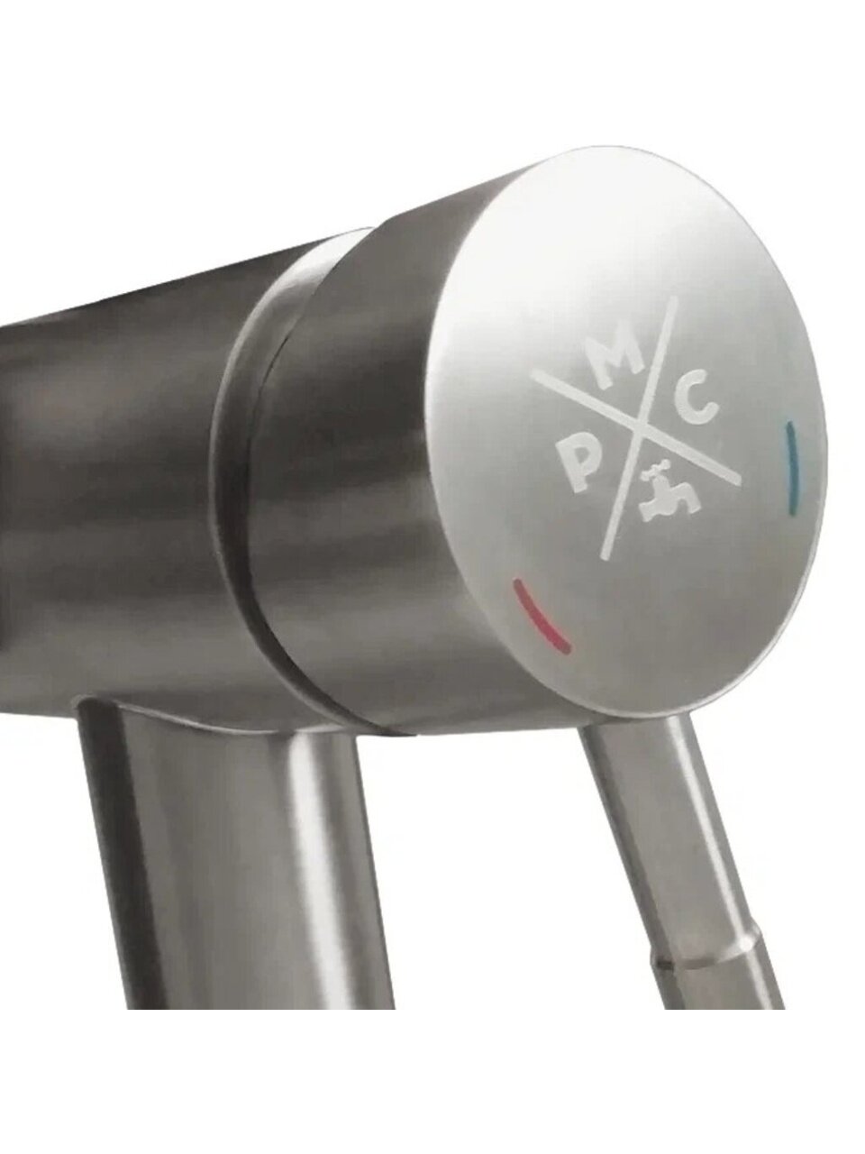 Корпус полностью из нержавеющей стали, управление — однорычажное, с поворотным механизмом и керамическим картриджем для плавного хода.