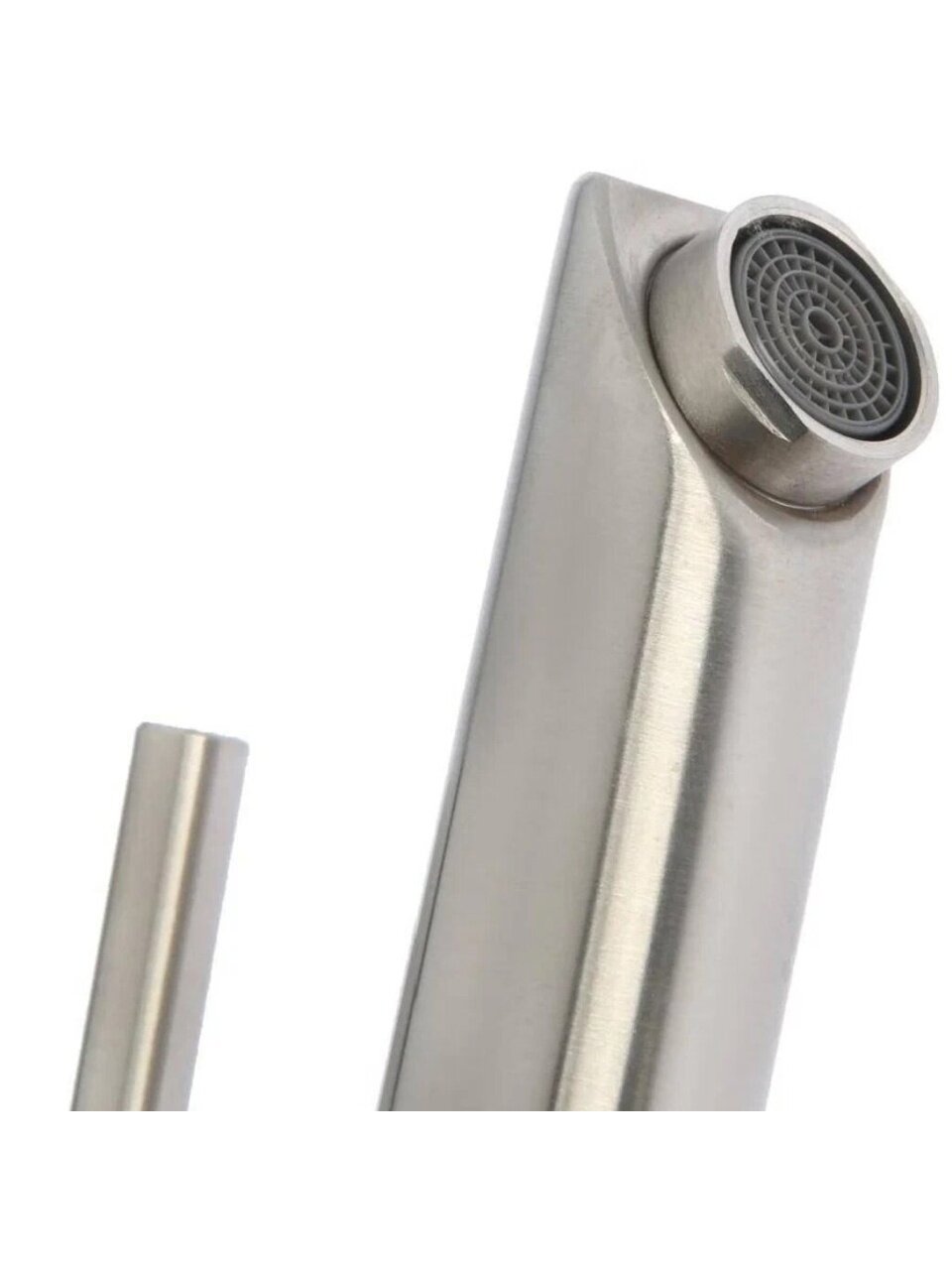 В отличие от пластиковых или хромированных аналогов, данная модель не теряет внешний вид со временем и легко очищается. Если вы ищете смеситель для умывальника, который прослужит долго, не потребует сложного ухода и будет гармонично смотреться в любом интерьере, этот вариант — оптимальный. Благодаря гибкой подводке и гайке для крепления, установка проста даже для новичков. Часто задают вопрос: «Подходит ли этот смеситель для фильтра?» — переключателя на фильтр нет, что делает модель максимально надежной и долговечной.