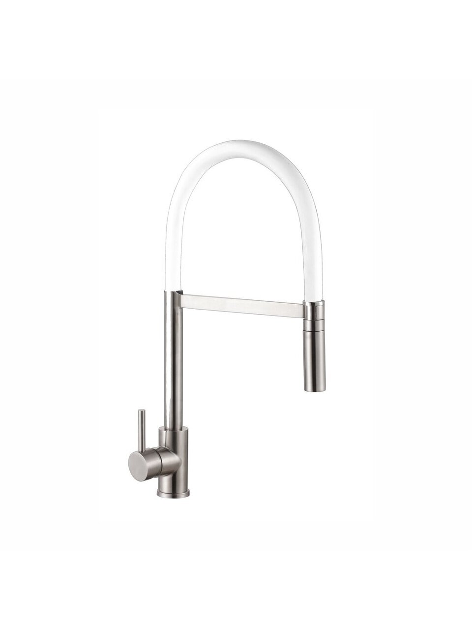 Гибкий излив облегчает мытье посуды, наполнение емкостей и уход за мойкой. Материал корпуса устойчив к коррозии, а однорычажное управление экономит время и воду.