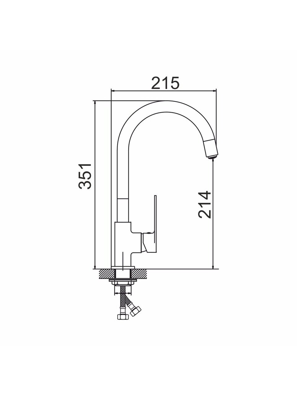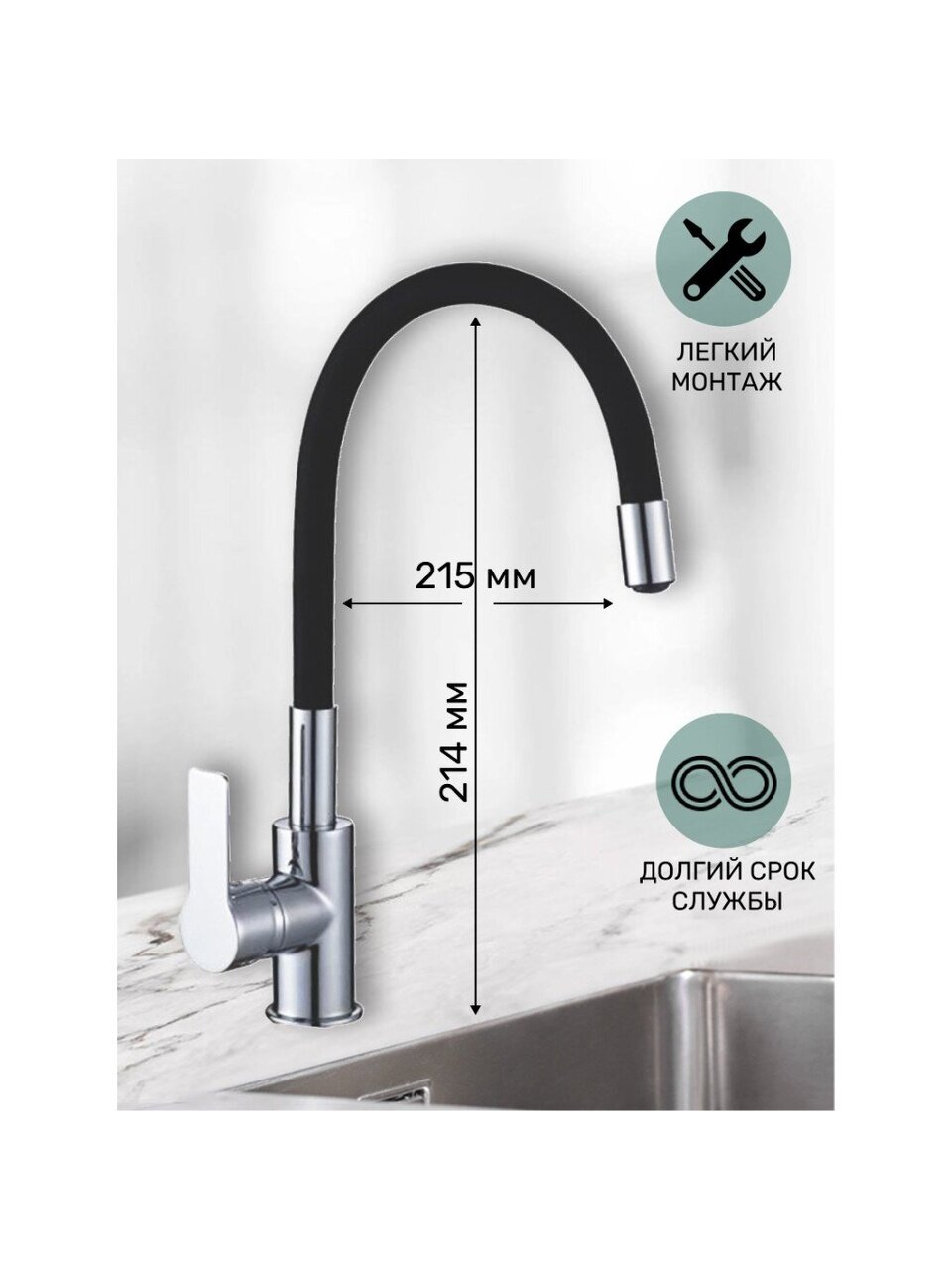 - Гибкий излив 21,5 см — удобно мыть посуду и наполнять высокую посуду без брызг