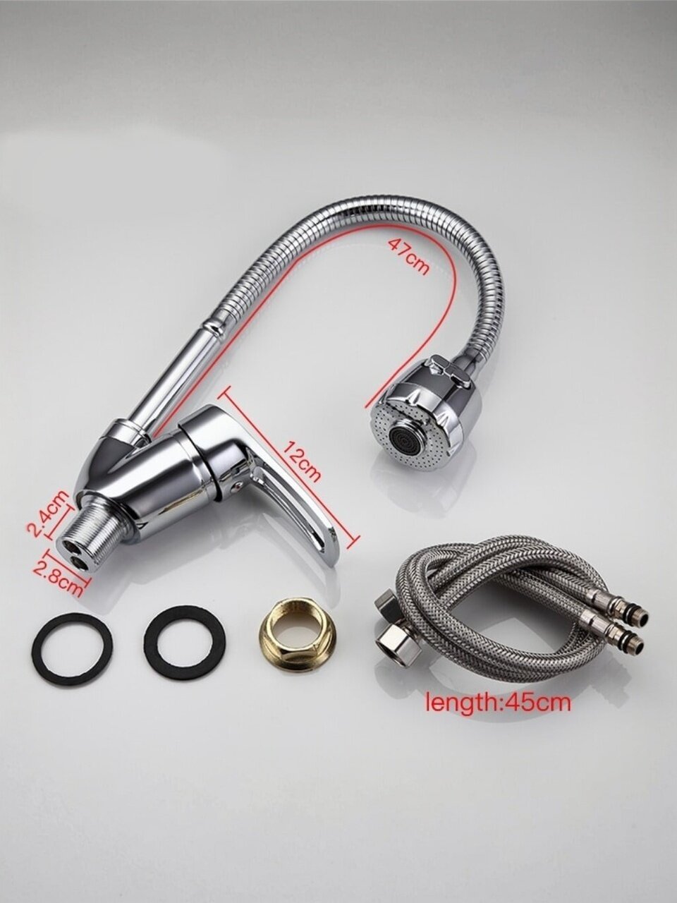 Смеситель для кухни Frap F43701-B с гибким изливом: современное решение для быстрой мойки и экономии воды. Надёжная сборка, стильный хром, 25 см длина.