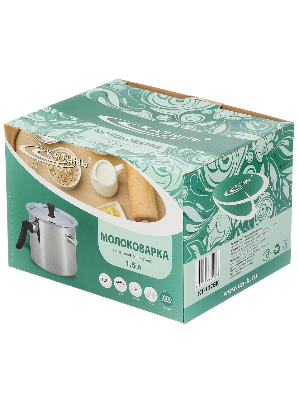 Молоковарка из нержавеющей стали 1.5 л Катунь КТ-137ВК — безопасное кипячение молока без пригорания, долговечность и оптимальный объём для семьи и дачи.