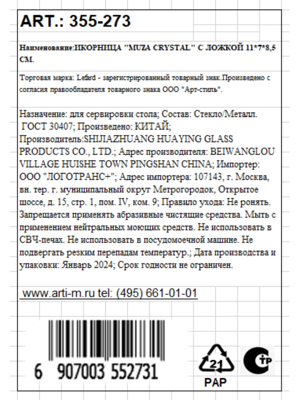 Вы можете приобрести «Икорница стекло, Lefard, Muza Crystal Лебедь, 11х7х8.5 см, с ложкой, 355-273» и другие товары в нашем интернет-магазине в Старом Осколе по низким ценам и с бесплатным самовывозом.