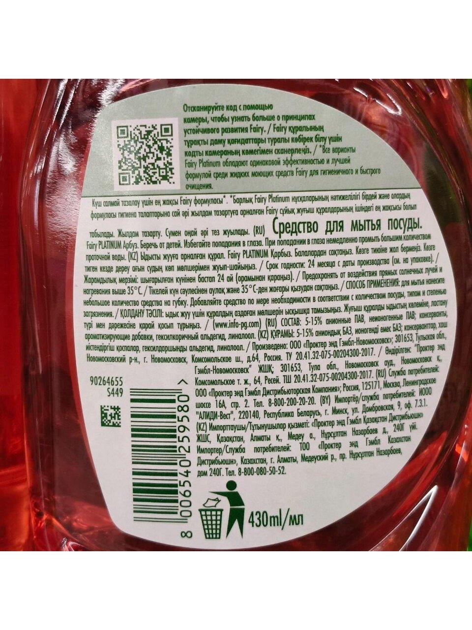 Вы можете приобрести «Средство для мытья посуды Fairy, Platinum Арбуз, 430 мл» и другие товары в нашем интернет-магазине в Казани по низким ценам и с бесплатным самовывозом.