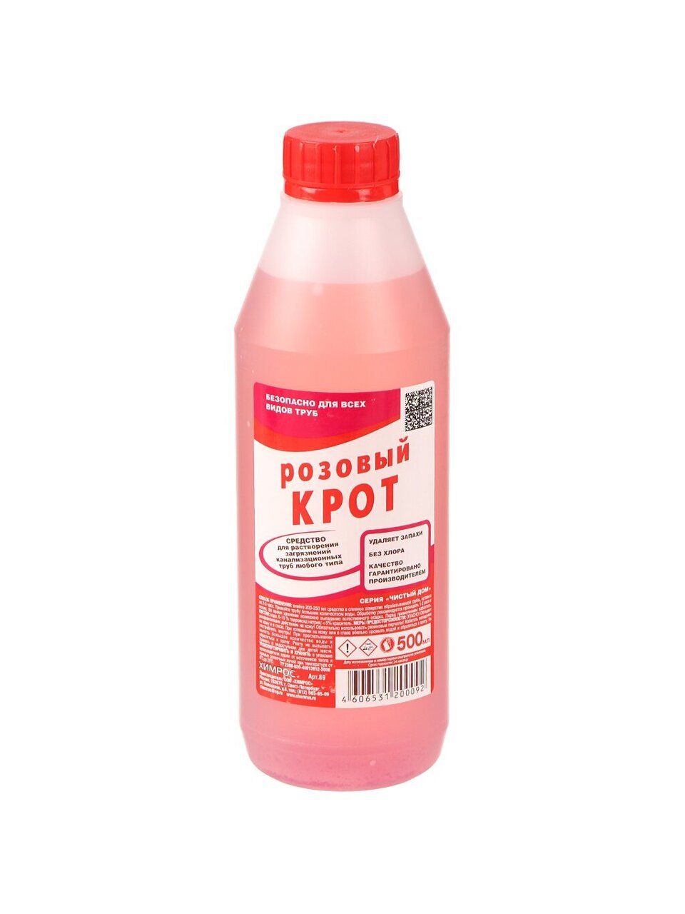 Средство от засоров Крот, 500 мл, розовое — эффективное решение для чистки фановых труб. Быстро устраняет засоры и неприятные запахи, подходит для регулярного ухода за канализацией. Безопасно для труб, не содержит хлор. Легко использовать, экономит время и силы. Идеально для поддержания чистоты и свежести в доме.