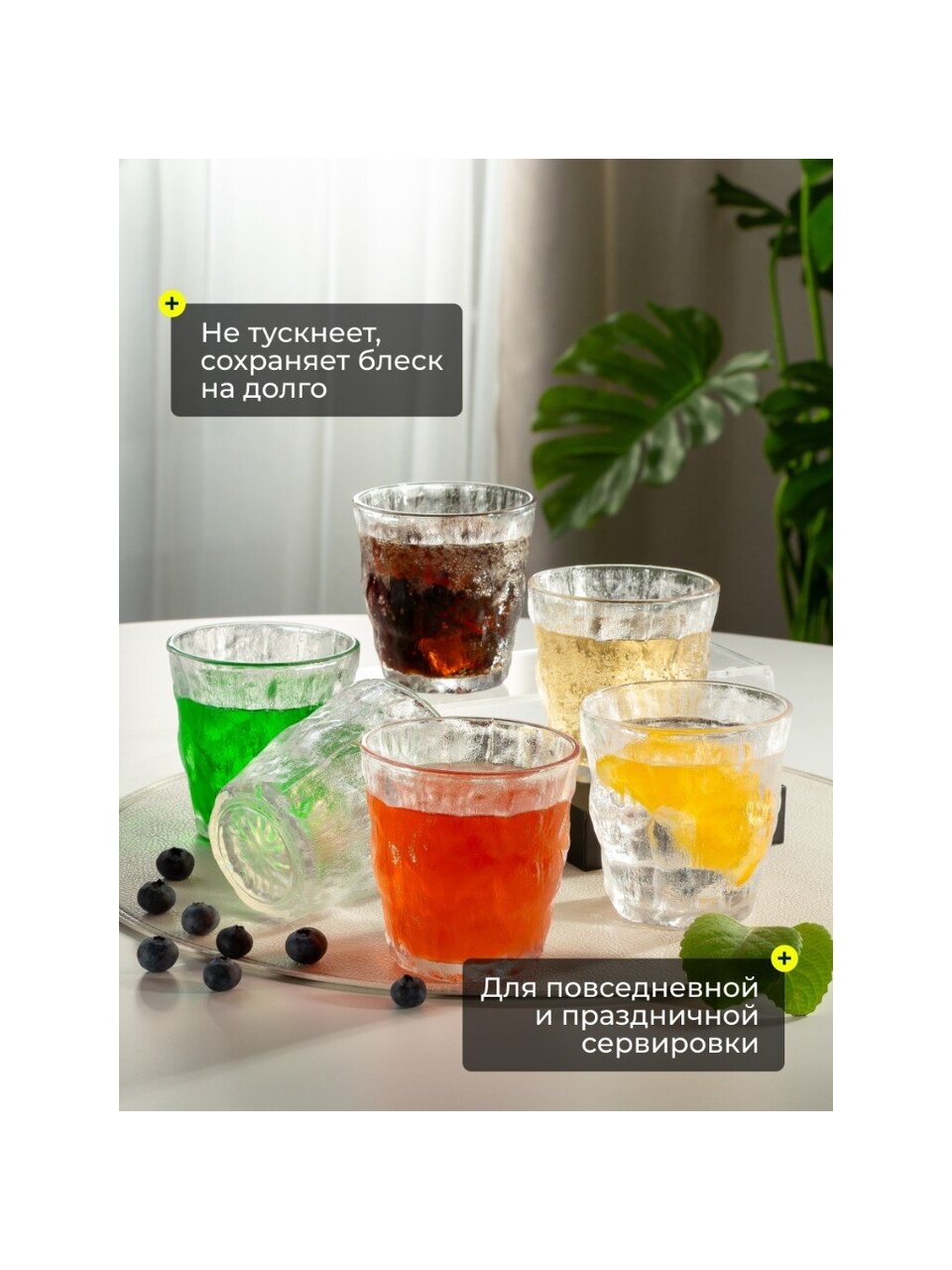 - 6 стаканов в наборе — отлично подходит для семьи, дачи или презентабельного подарка