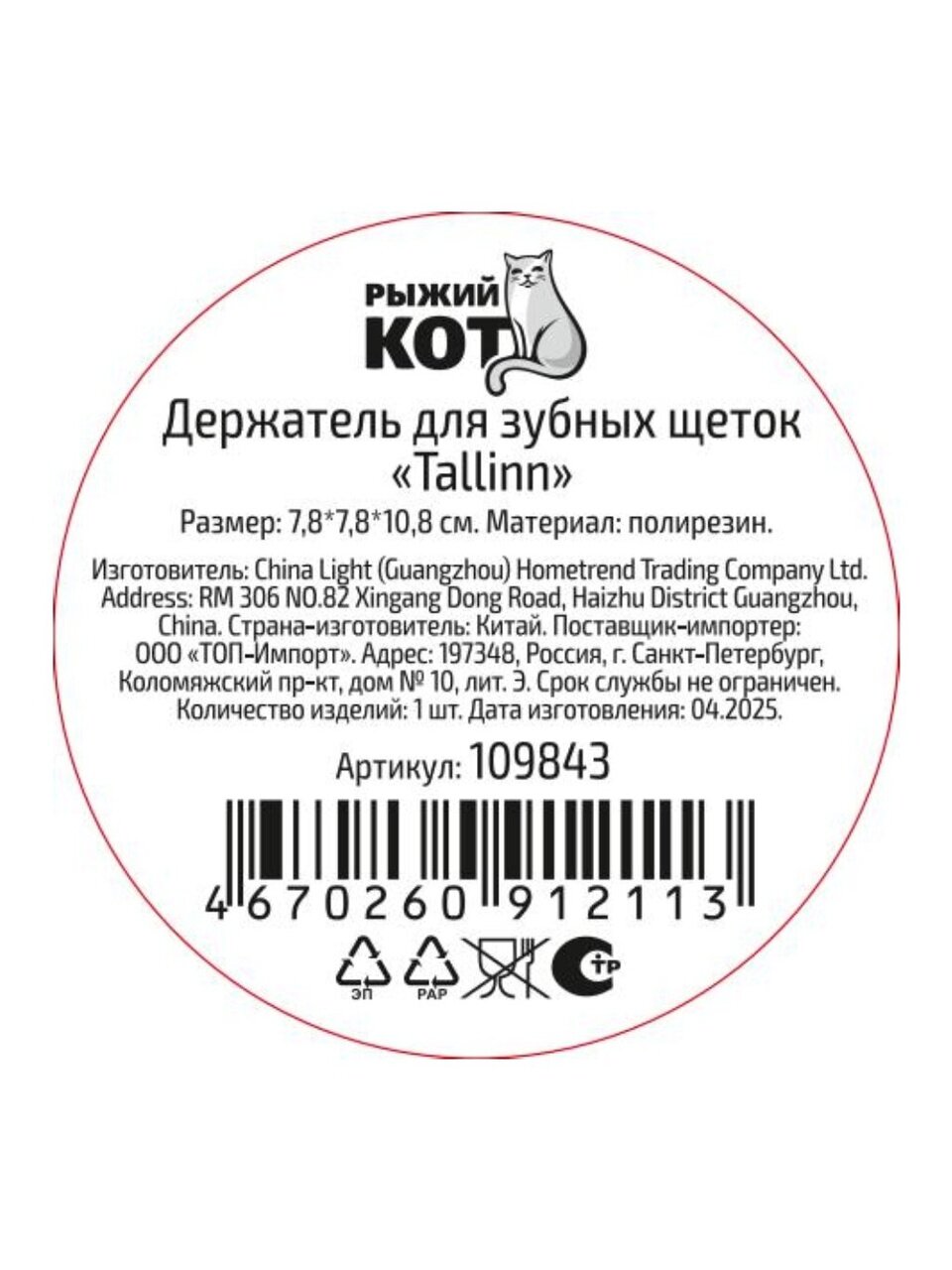 Вы можете приобрести «Стакан для зубных щеток, 7.8х7.8х10.8 см, полирезина, Рыжий кот, Tallin, 109843» и другие товары в нашем интернет-магазине в Обнинске по низким ценам и с бесплатным самовывозом.