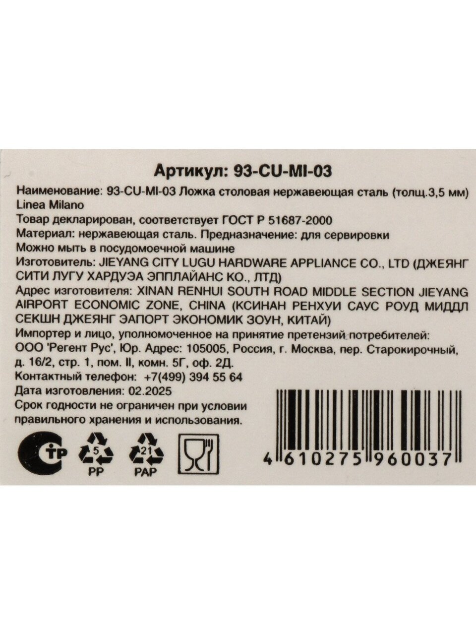 Закажите ложку Regent Inox Linea Milano сейчас — получите универсальный столовый прибор с гарантией качества и быстрой доставкой. Отличный выбор для подарка и повседневного использования.