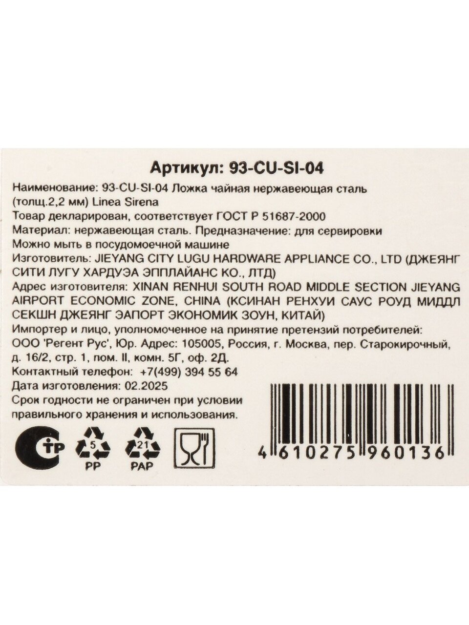 Ложка чайная Regent Inox Linea Sirena из нержавеющей стали — идеальный выбор для подарка и ежедневного использования: долговечность, стиль и удобство в каждой детали.