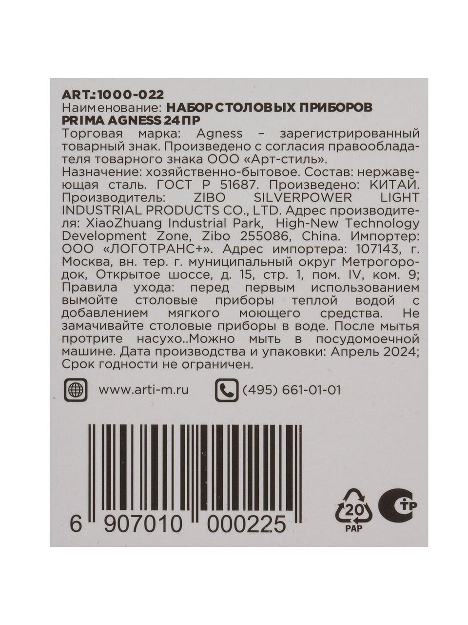 Подарочный набор столовых приборов Agness Prima 24 предмета — стиль, долговечность и идеальный вариант для сервировки на 6 персон