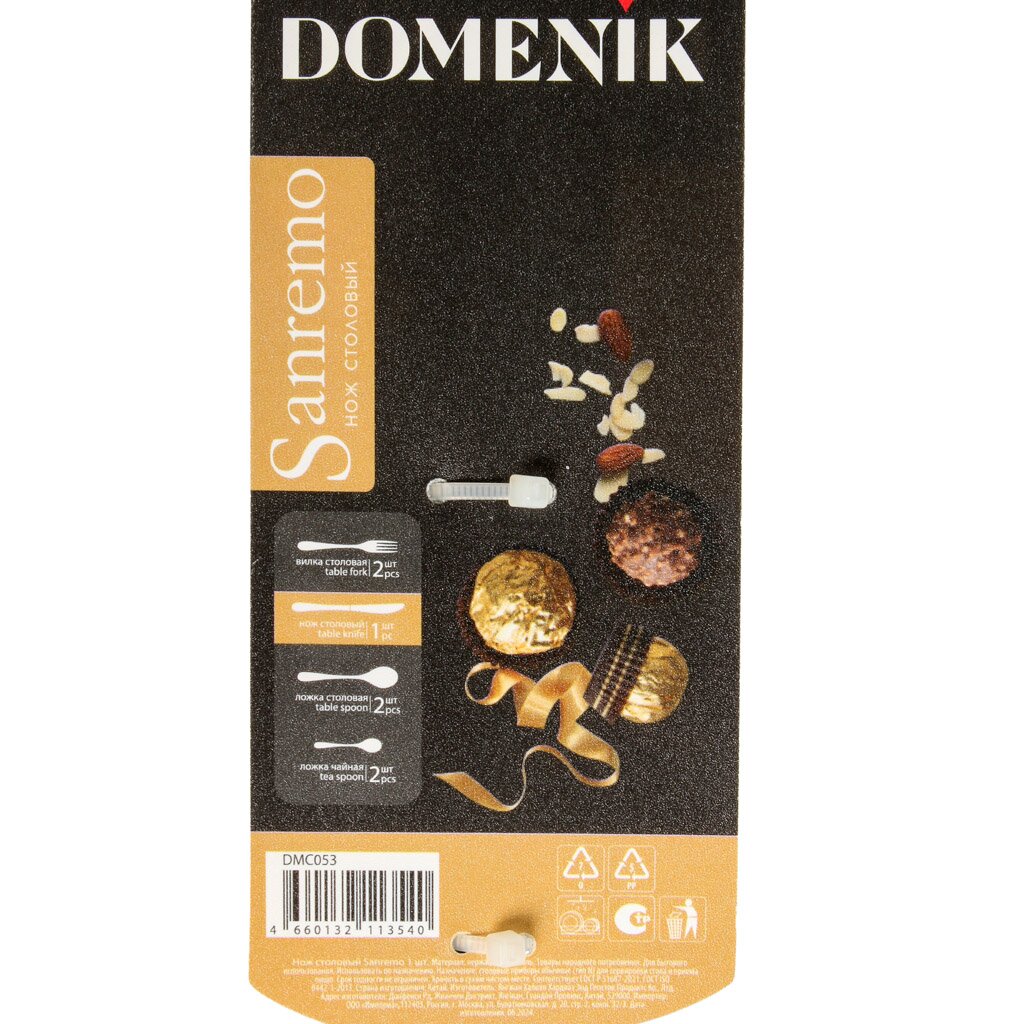 Столовый нож Domenik Sanremo DMC053 из нержавеющей стали — универсальный выбор для сервировки дома, дачи и стильного подарка. Прочный, долговечный, подходит для посудомоечной машины.