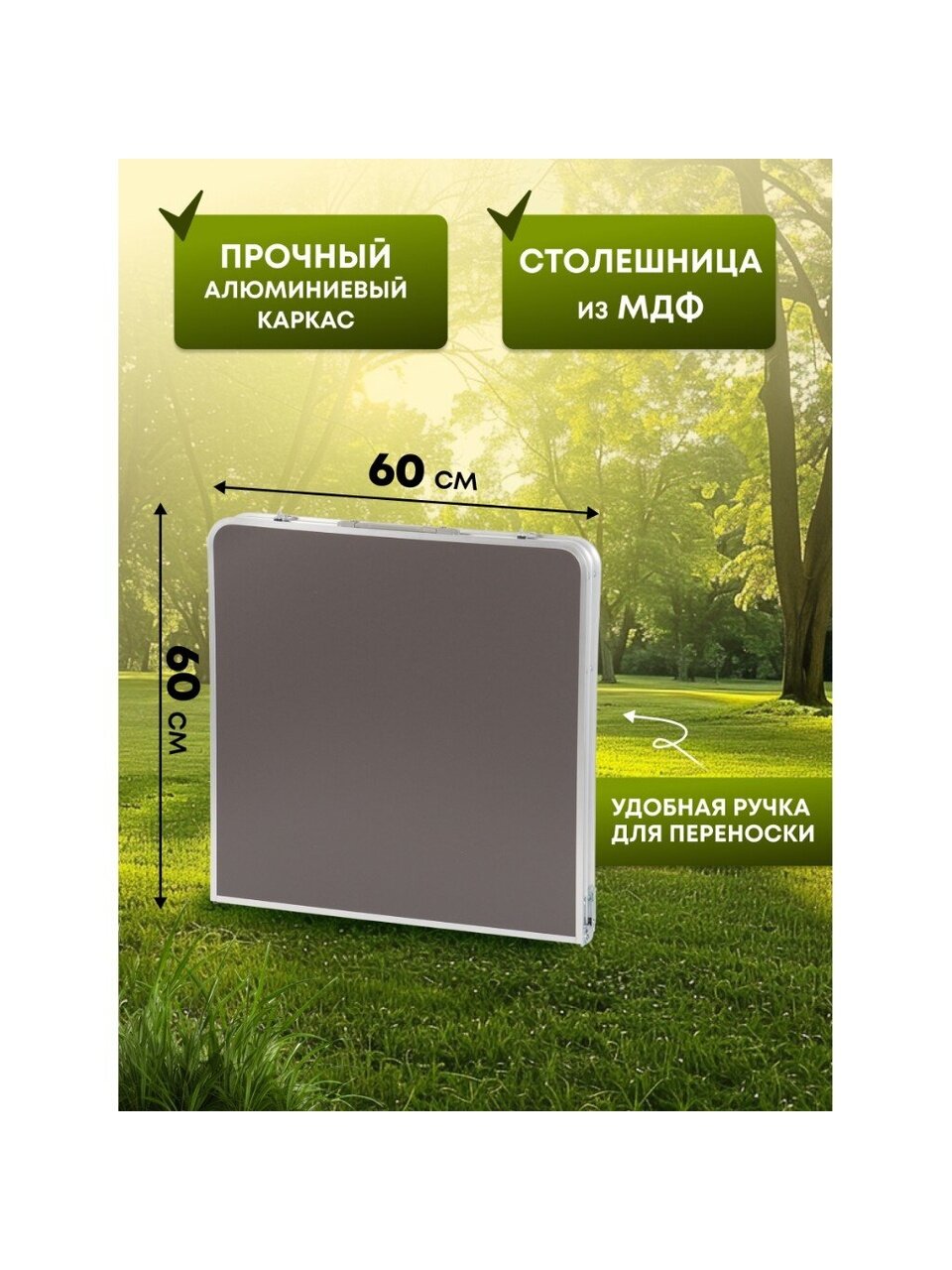 Этот стол создан для тех, кто любит проводить время на свежем воздухе, устраивать пикники или просто хочет иметь надежный и компактный предмет мебели, который легко транспортировать и хранить. Благодаря складной конструкции, стол легко превращается в компактный чемодан, что значительно упрощает его переноску и хранение. Металлическая основа обеспечивает прочность и долговечность, а столешница из МДФ придает изделию стильный внешний вид.