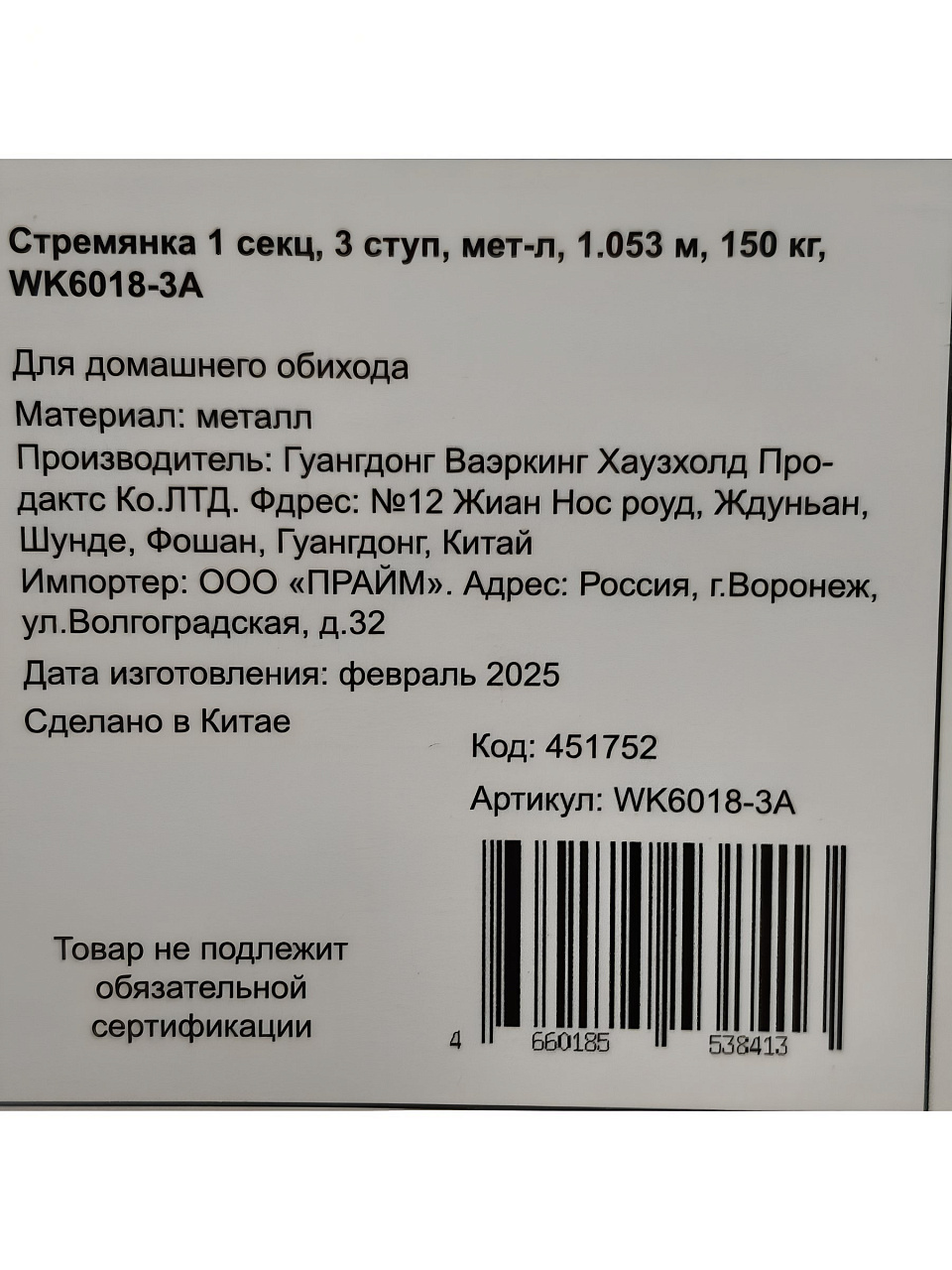 Вы можете приобрести «Стремянка 1 секция, 3 ступени, металл, 1.053 м, 150 кг, широкая ступень, WK6018-3A» и другие товары в нашем интернет-магазине в Коврове по низким ценам и с бесплатным самовывозом.