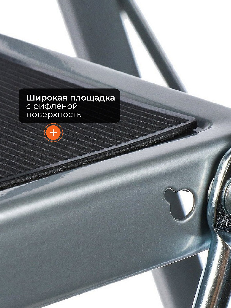 - Профиль опорной части стремянки представляет сосбой цельную раму на которую закреплены противоскользящие накладки.