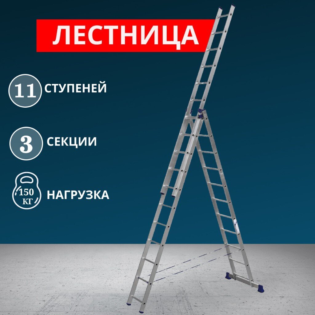 Вы можете приобрести «Лестница 3 секции, 11 ступеней, алюминий, 7.3 м, 150 кг, Alumet, 5311» и другие товары в нашем интернет-магазине в Иваново по низким ценам и с бесплатным самовывозом.