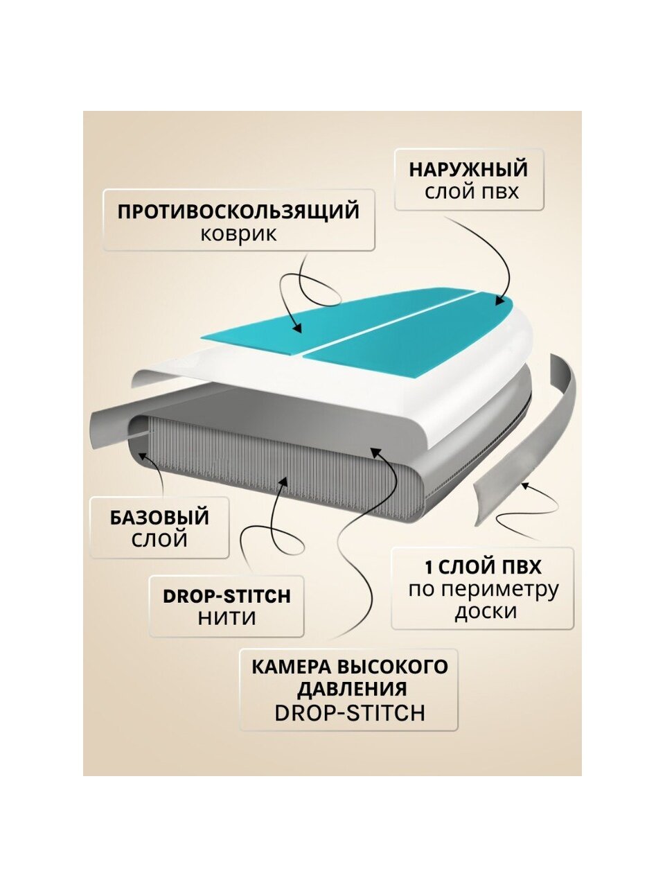Сапборд изготовлен из прочного одинарного ПВХ, что обеспечивает его долговечность и устойчивость к повреждениям. Максимальная нагрузка до 200 кг позволяет использовать его людям разной комплекции, а карго-система обеспечивает удобное размещение необходимых вещей на борту. Плоский корпус и один плавник с крепежом гарантируют стабильность и легкость управления, что делает его идеальным выбором для начинающих.