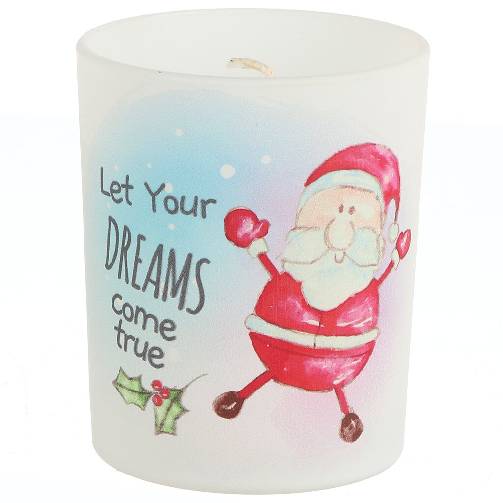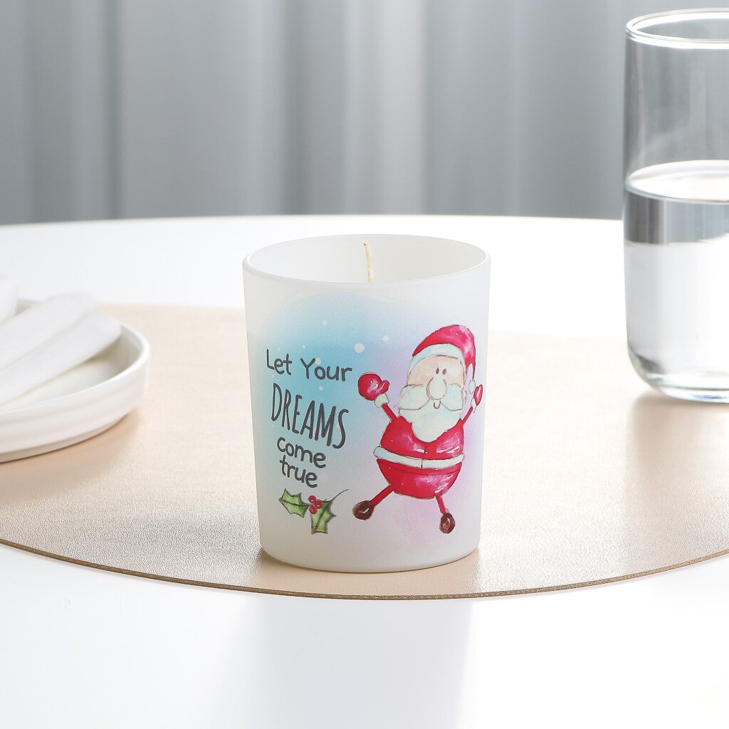 Свеча парафиновая "Веселый Санта" 7,7х9,3 см в стеклянном подсвечнике: новогодний уют, безопасный декор и универсальный подарок для дома — купить недорого онлайн.