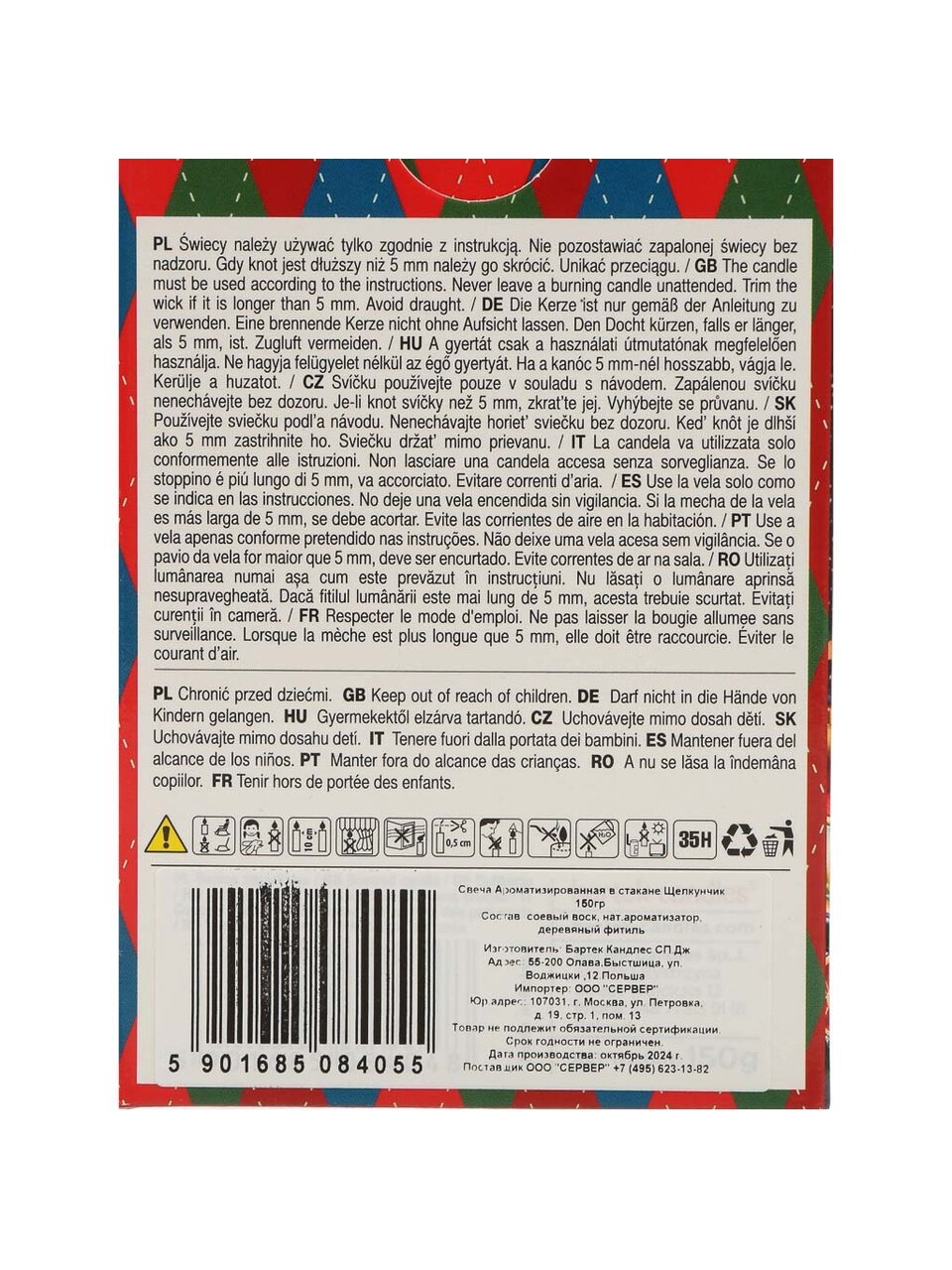 Какой состав у свечи Bartek Candles "Щелкунчик" и безопасна ли она для дома?