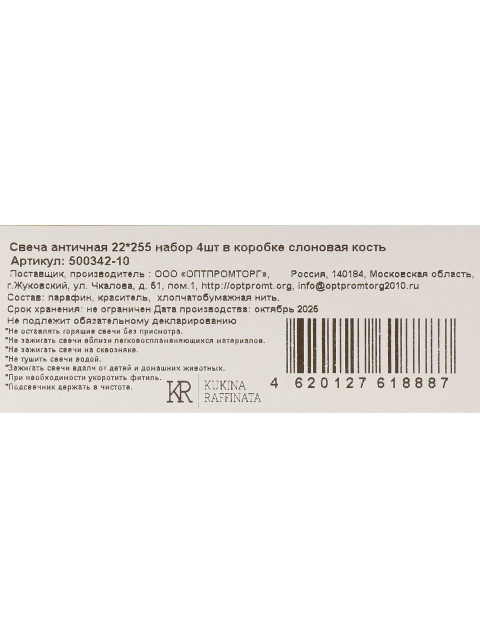 Вы можете приобрести «Свеча декоративная, 25.5х2.2 см, 4 шт, слоновая кость, Kukina Raffinata, античная, 500342-10» и другие товары в нашем интернет-магазине в Армавире по низким ценам и с бесплатным самовывозом.