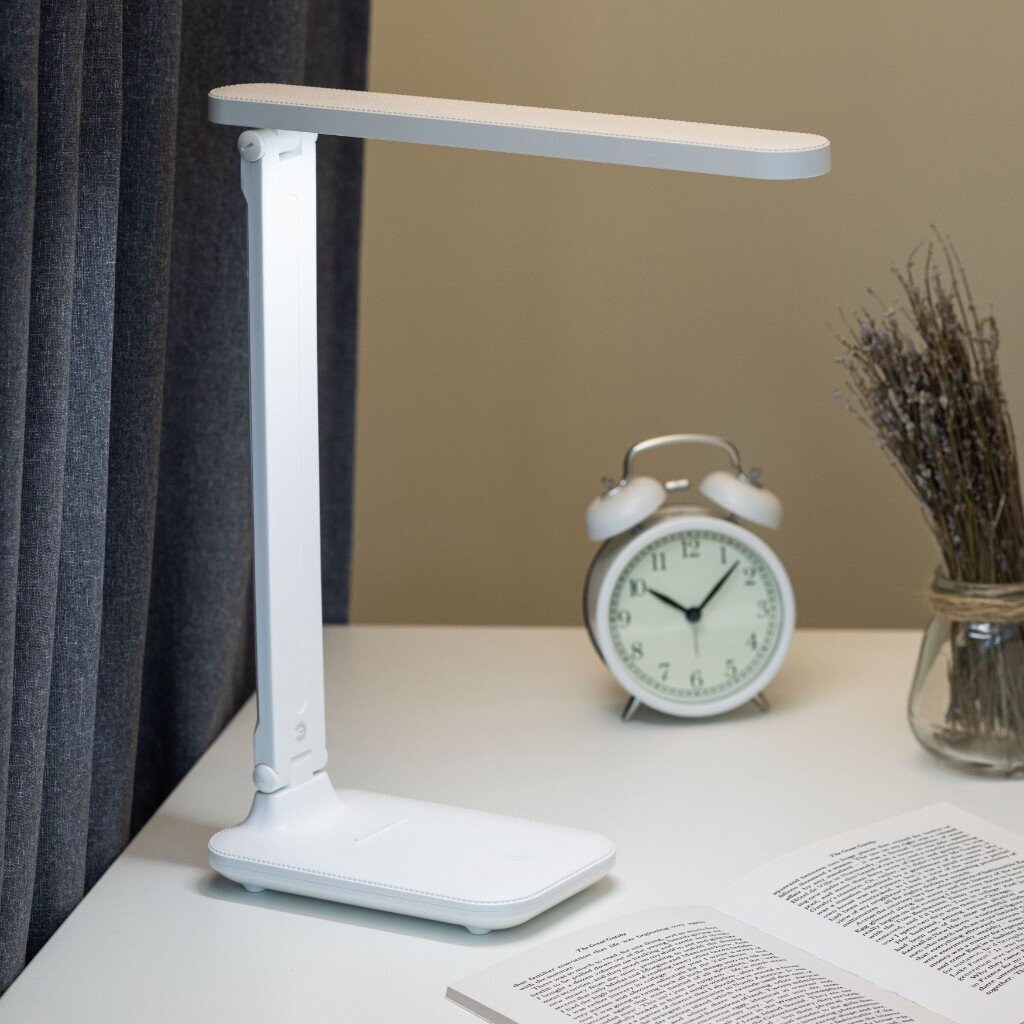 Настольный светильник ЭРА NLED-495-5W-W со светодиодами (LED) в качестве источников света в дизайне "под кожу". Встроенный литиевый аккумулятор для автономной работы. Подзарядка от USB. USB-кабель в комплекте. Оснащен сенсорным управлением с возможностью выбора цветовой температуры (теплый, нейтральный или холодный свет). Плавный диммер для регулировки яркости. Выключатель для отключения/блокировки сенсора. Направление света регулируется наклоном стойки и поворотом панели со светодиодами относительно стойки для максимального комфорта. Складная конструкция для оптимального хранения.