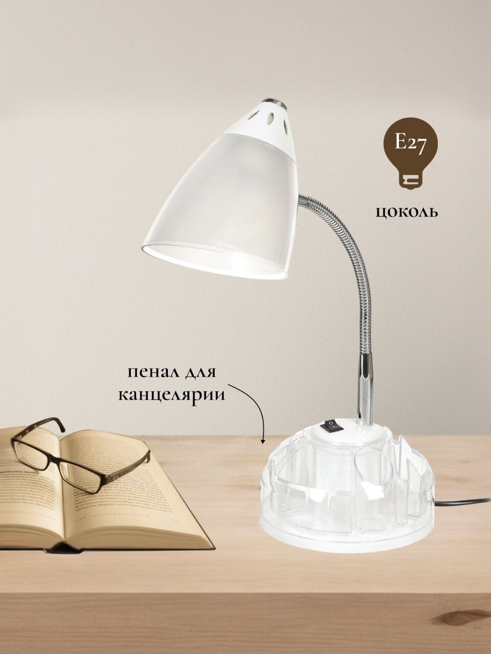 Вы можете приобрести «Светильник настольный с пеналом, E27, 40 Вт, серебристый, абажур белый, Lofter, SPE17156-18B» и другие товары в нашем интернет-магазине в Курске по низким ценам и с бесплатным самовывозом.