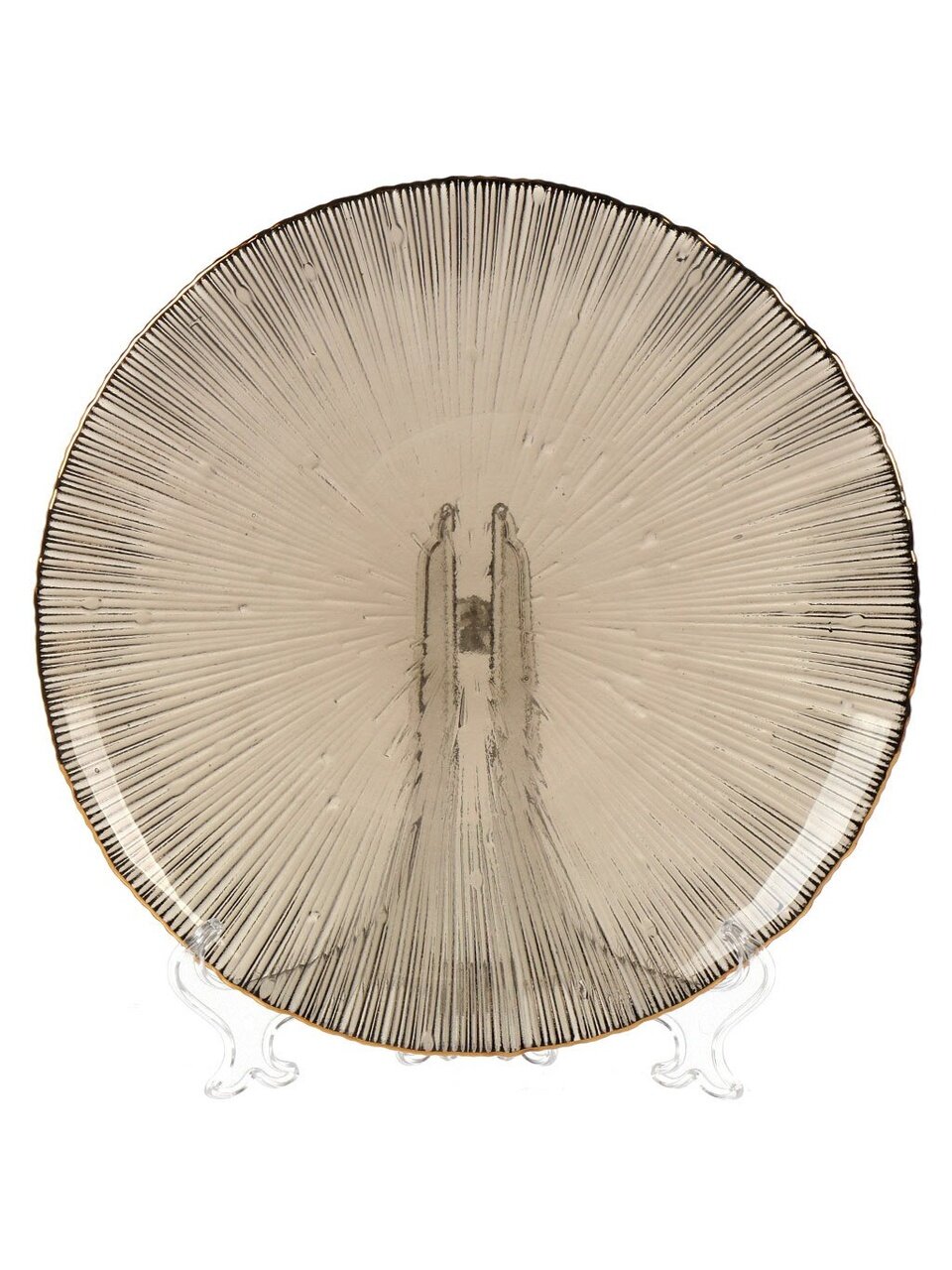 - Уникальный дизайн: круглая стеклянная тарелка с утончённой золотой каймой — акцент в сервировке любого стола