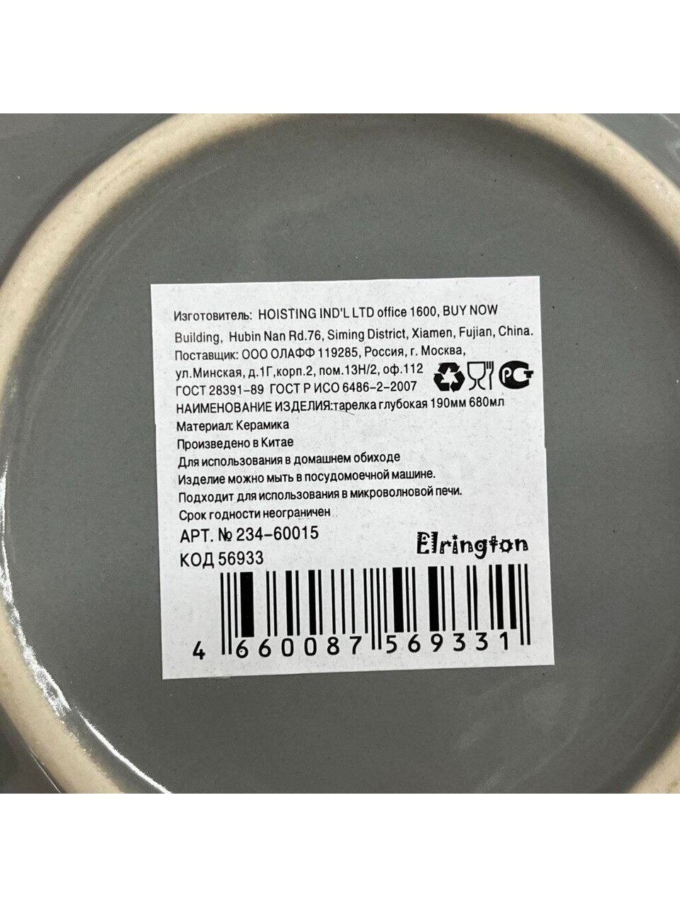 В отличие от пластиковых и стеклянных аналогов, керамика не впитывает запахи и не царапается при частом использовании. Классический серый цвет подходит к любой посуде и не выцветает со временем. Если вы спрашиваете, подходит ли такая тарелка для подарка — да, лаконичный дизайн и бренд Elrington делают её универсальным вариантом. Как использовать суповую тарелку Kristi? Она идеальна для густых супов, рагу, каш, а также для подачи салатов и десертов.