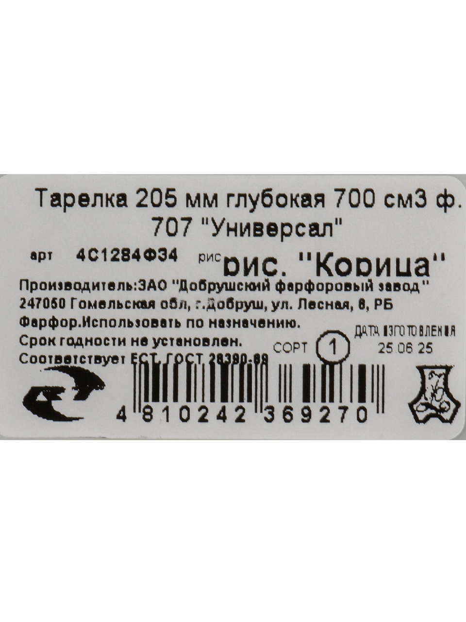 Вы можете приобрести «Тарелка суповая, фарфор, 20.5 см, 0.7 л, круглая, Универсал Корица, Добрушский фарфоровый завод, 4С1284Ф34» и другие товары в нашем интернет-магазине в Старом Осколе по низким ценам и с бесплатным самовывозом.