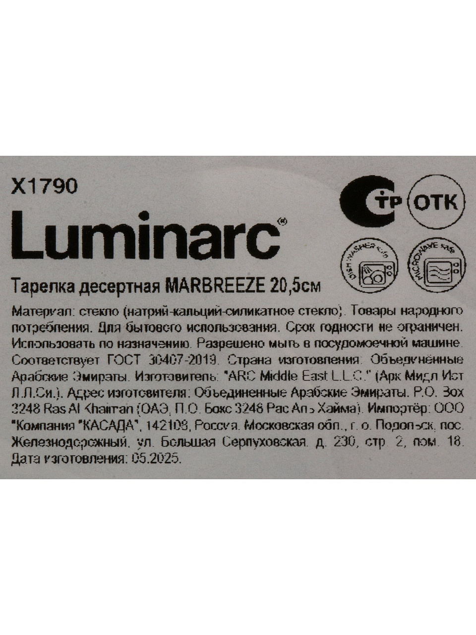 Marbreeze — это не только функциональность, но и стиль. Тарелка станет акцентом на любом столе, а благодаря бренду Luminarc вы можете быть уверены в безопасности и долговечности. Закажите сейчас — и получите выгодные условия доставки!
