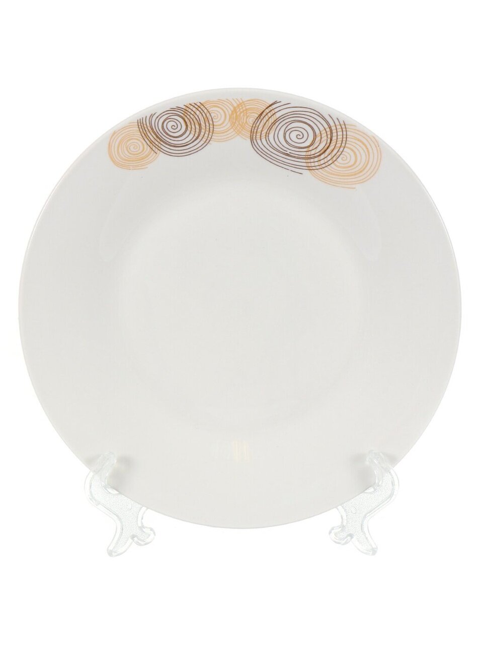 Тарелка десертная Daniks 19 см: стильные бежевые круги, керамика, подходит для СВЧ и посудомойки — идеальный выбор для сервировки и подарка.