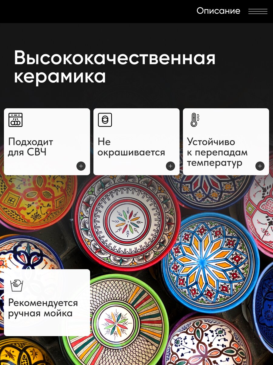- Оптимальный размер 23 см, керамика устойчива к перепадам температуры, подходит для разогрева в микроволновке