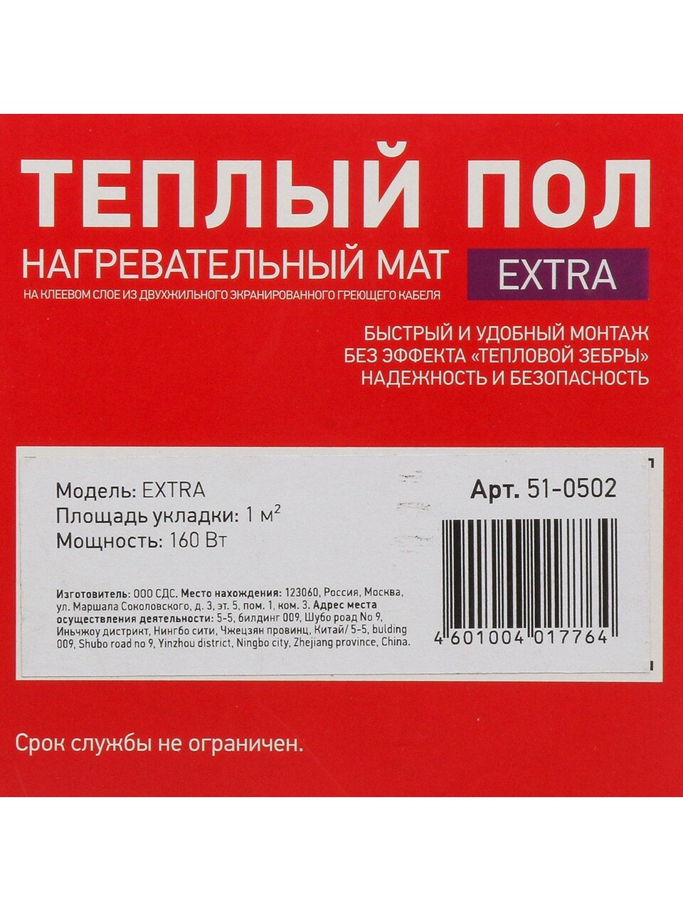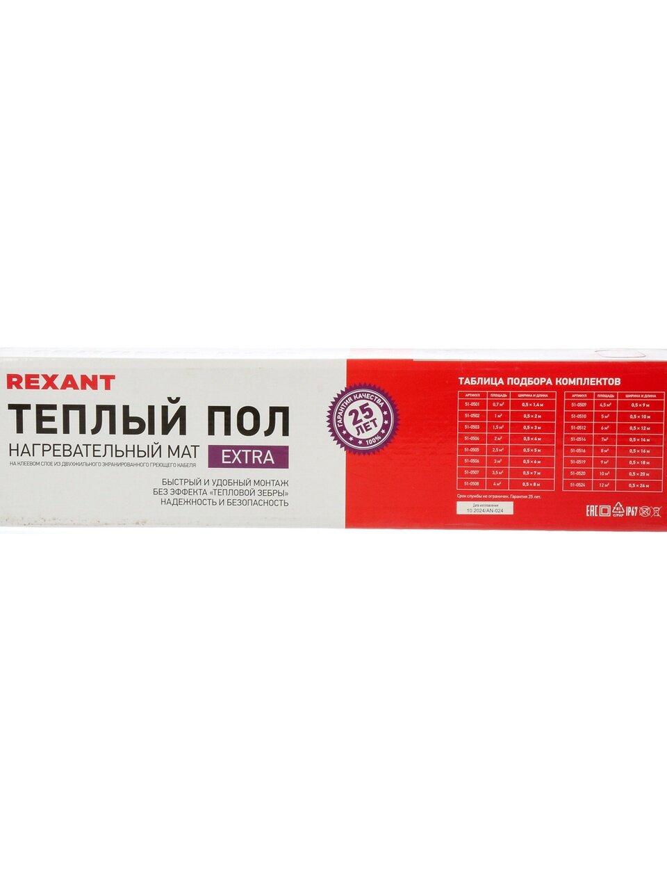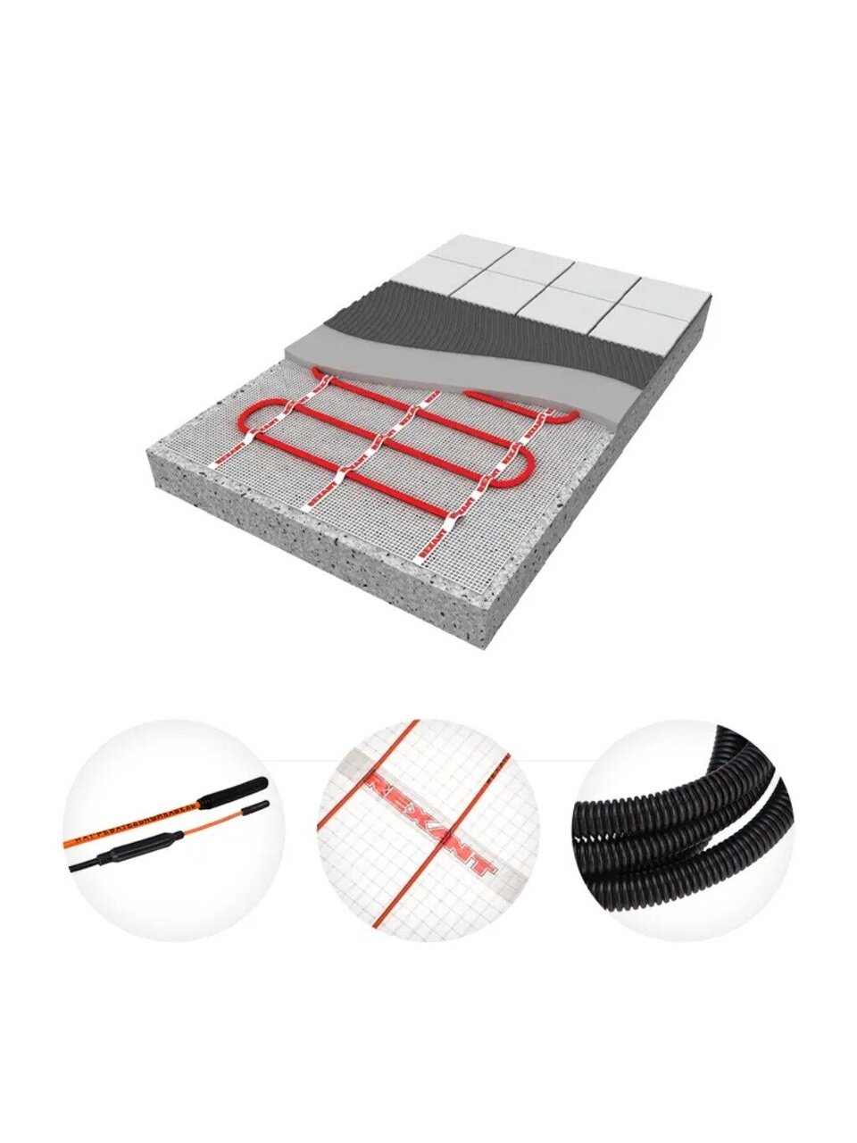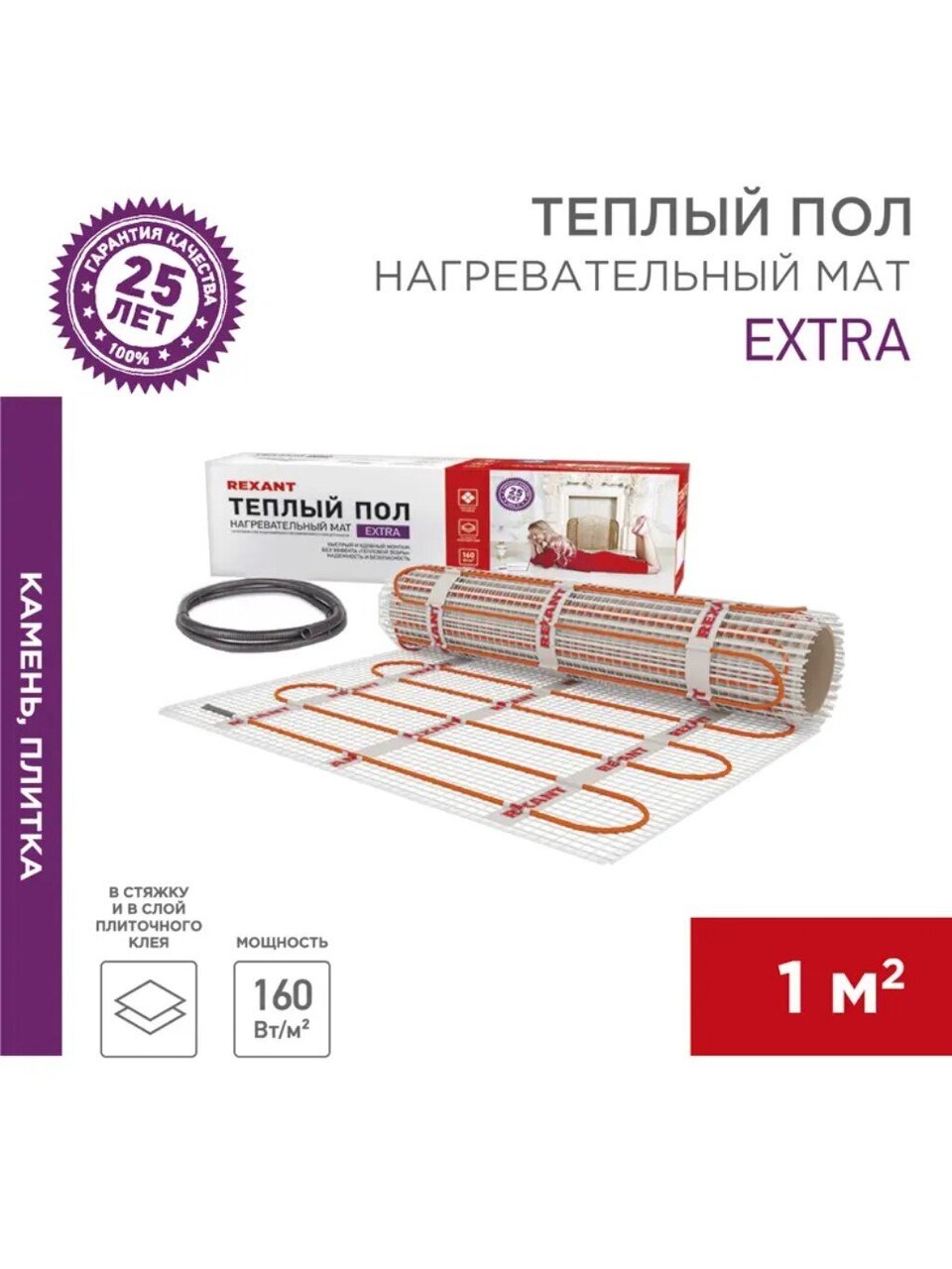 Тёплый пол 1 м² Rexant Extra: быстрый монтаж, равномерный обогрев 160 Вт, IP67 — идеальное решение для дома и дачи по выгодной цене.