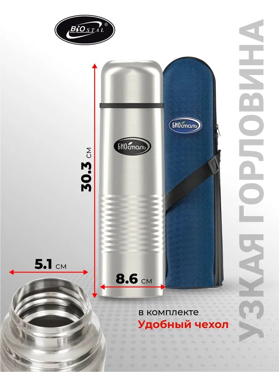 Вы можете приобрести «Термос нержавеющая сталь, 1 л, узкая горловина, Biostal, колба нержавеющая сталь, в чехле, NB-1000-В» и другие товары в нашем интернет-магазине в Железногорске по низким ценам и с бесплатным самовывозом.