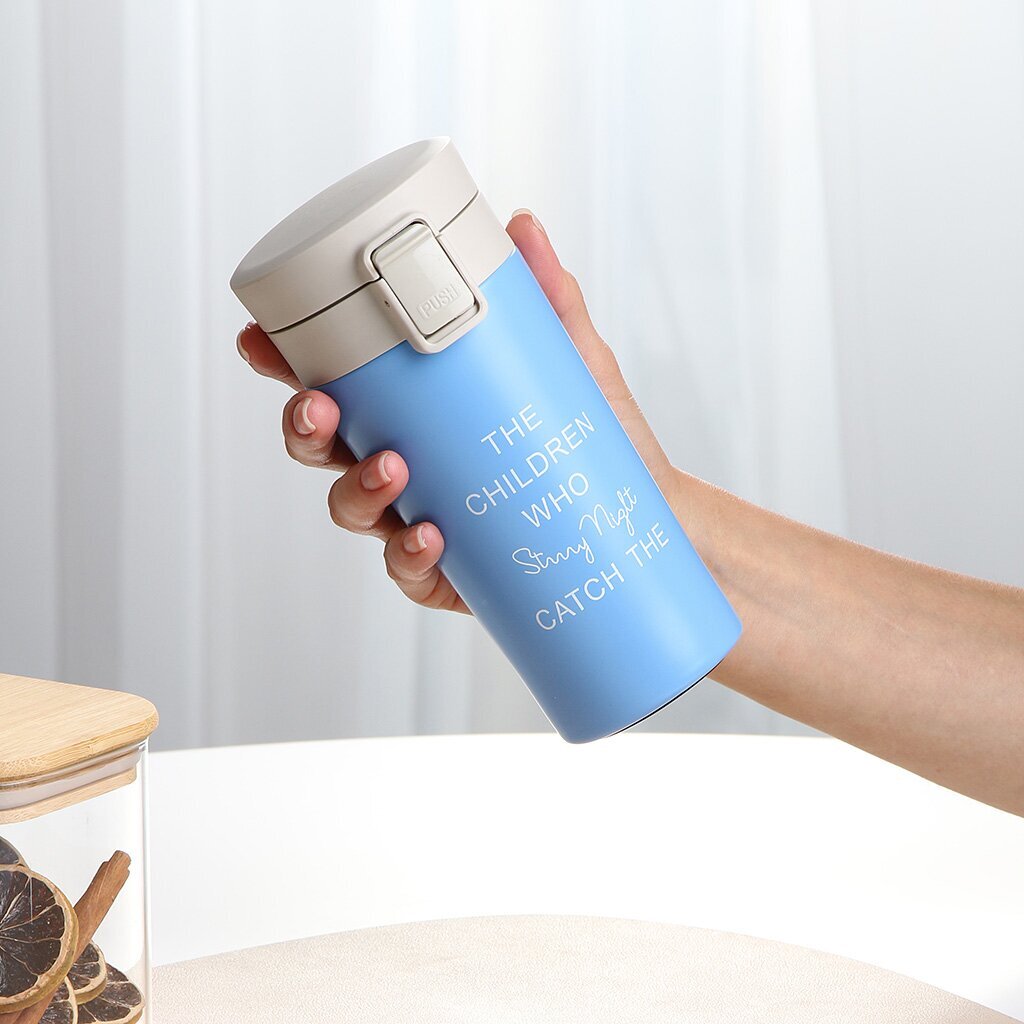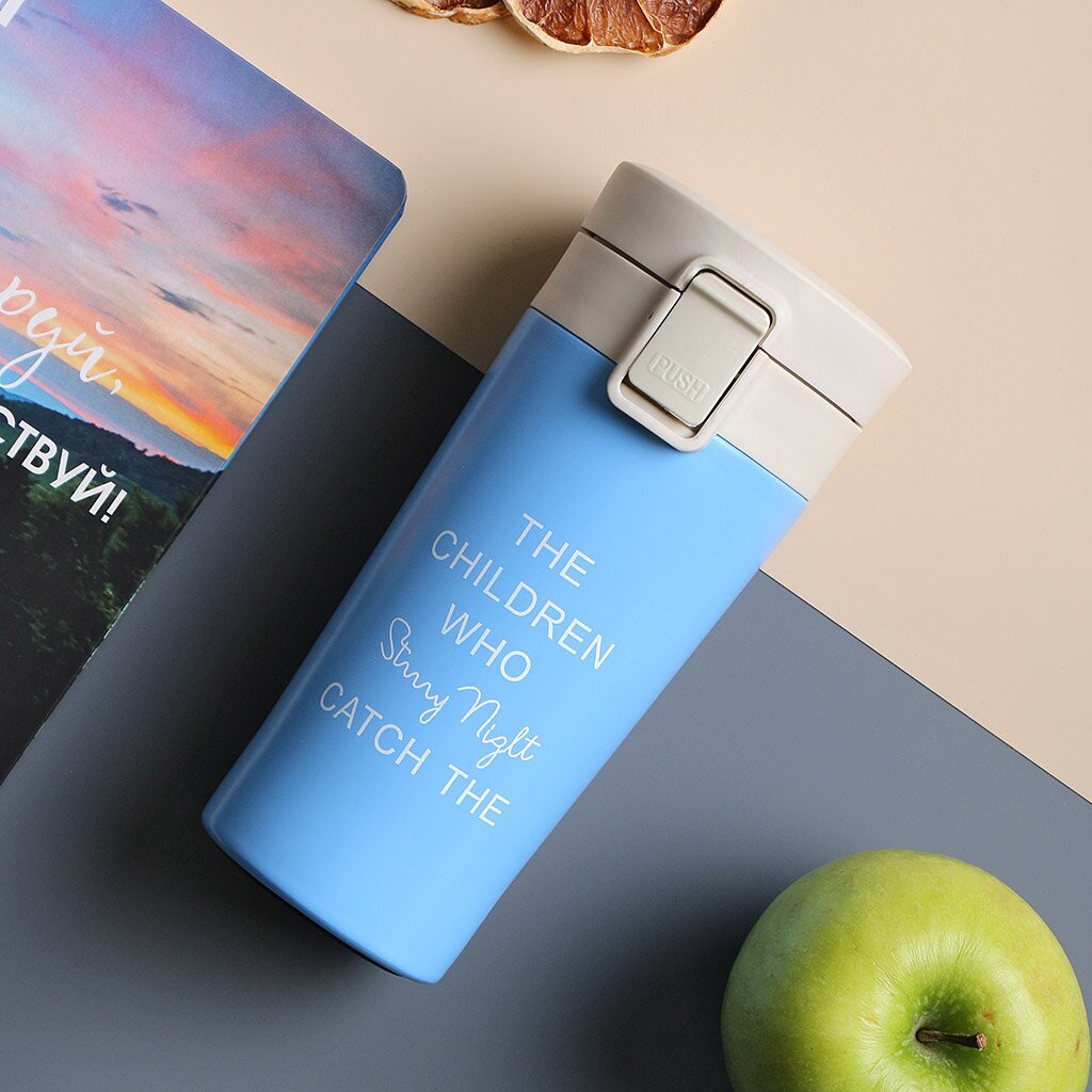 Термокружка нерж., голуб, 0.38 л (Y4-9332) — это современное решение для тех, кто ищет, какую термокружку выбрать для города, спорта или работы. Корпус и колба выполнены из прочной нержавеющей стали, что гарантирует долгий срок службы и сохранение вкуса напитка. Благодаря широкому горлышку кружку легко наполнять и мыть, а крышка с надёжной защёлкой защищает от случайных проливов — удобно брать с собой в дорогу или на занятия спортом.