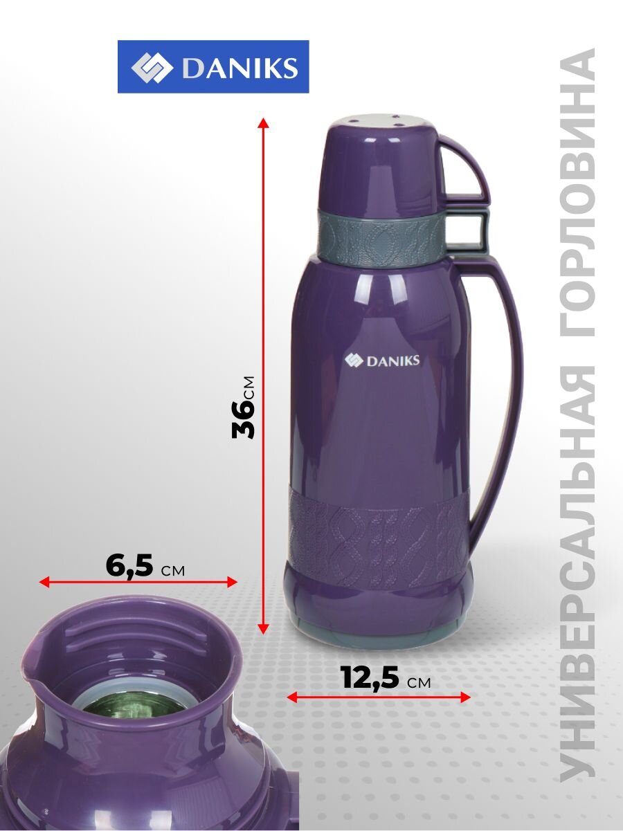 Модель Daniks 1.8 л с универсальной горловиной и стеклянной колбой оптимальна для хранения чая, кофе или компота — подходит для дома, дачи, офиса, длительных прогулок.