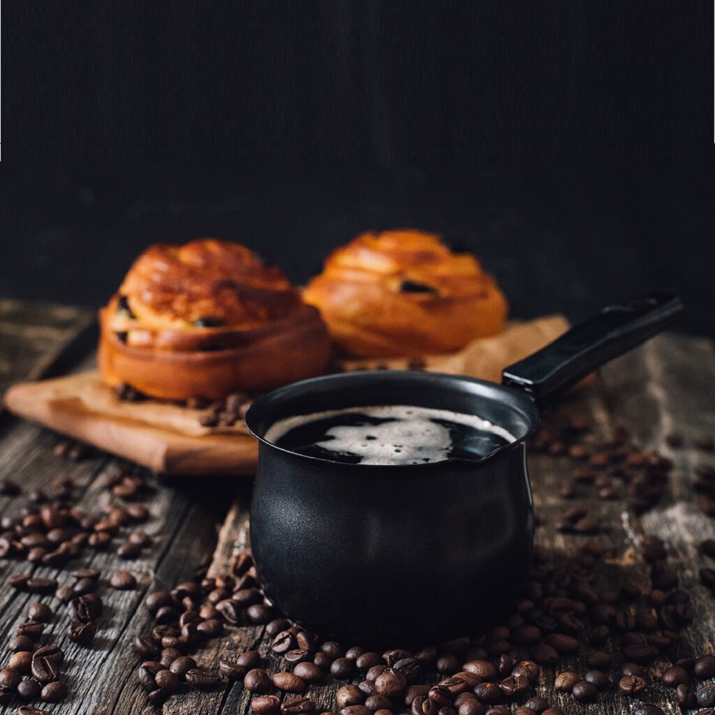 Кофеварка (турка) из карбоновой стали. Использовать на малом и среднем огне, данное изделите не следует перегревать. Можно мыть в посудомочной машине.