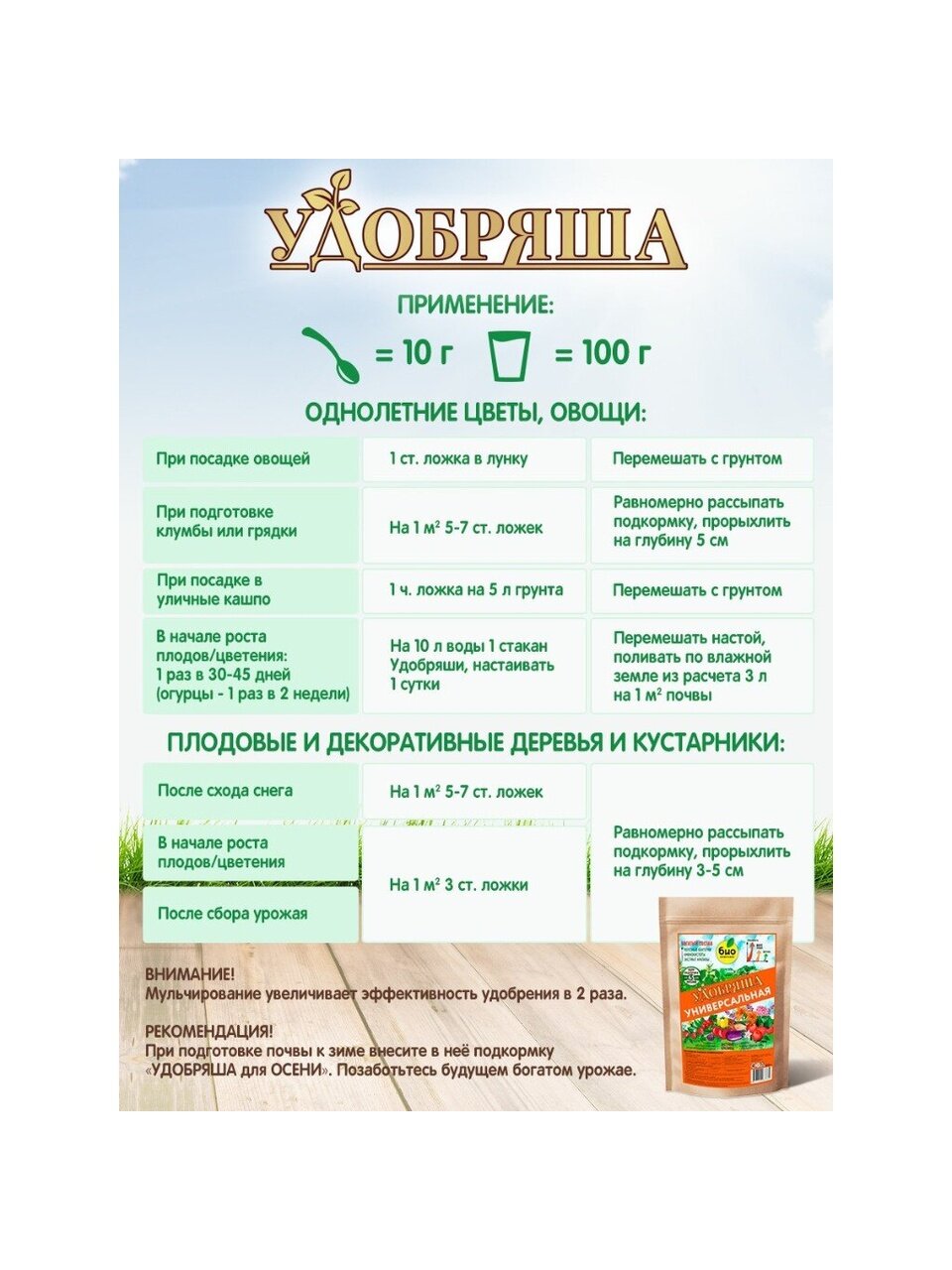 "Удобряша"– это органическое удобрение с аминокислотами и полезными почвенными бактериями. Универсальный состав подкормки подходит для всех видов растений.