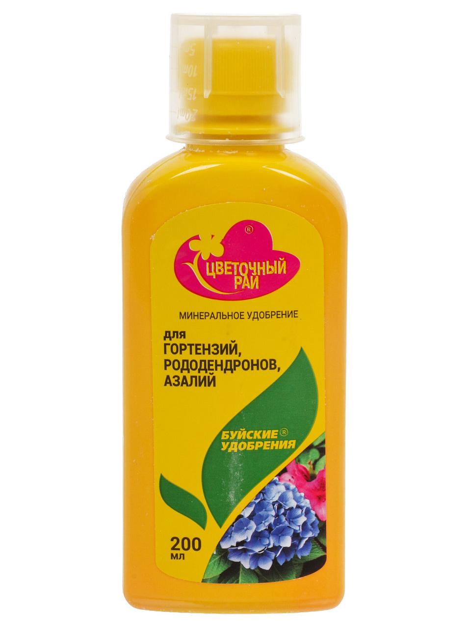 Удобрение предназначено для гортензий, рододендронов и азалий. Можно применять для комнатных, садовых и балконных культур. Тип: минеральный стимулятор, объем — 200 мл, жидкая форма выпуска.