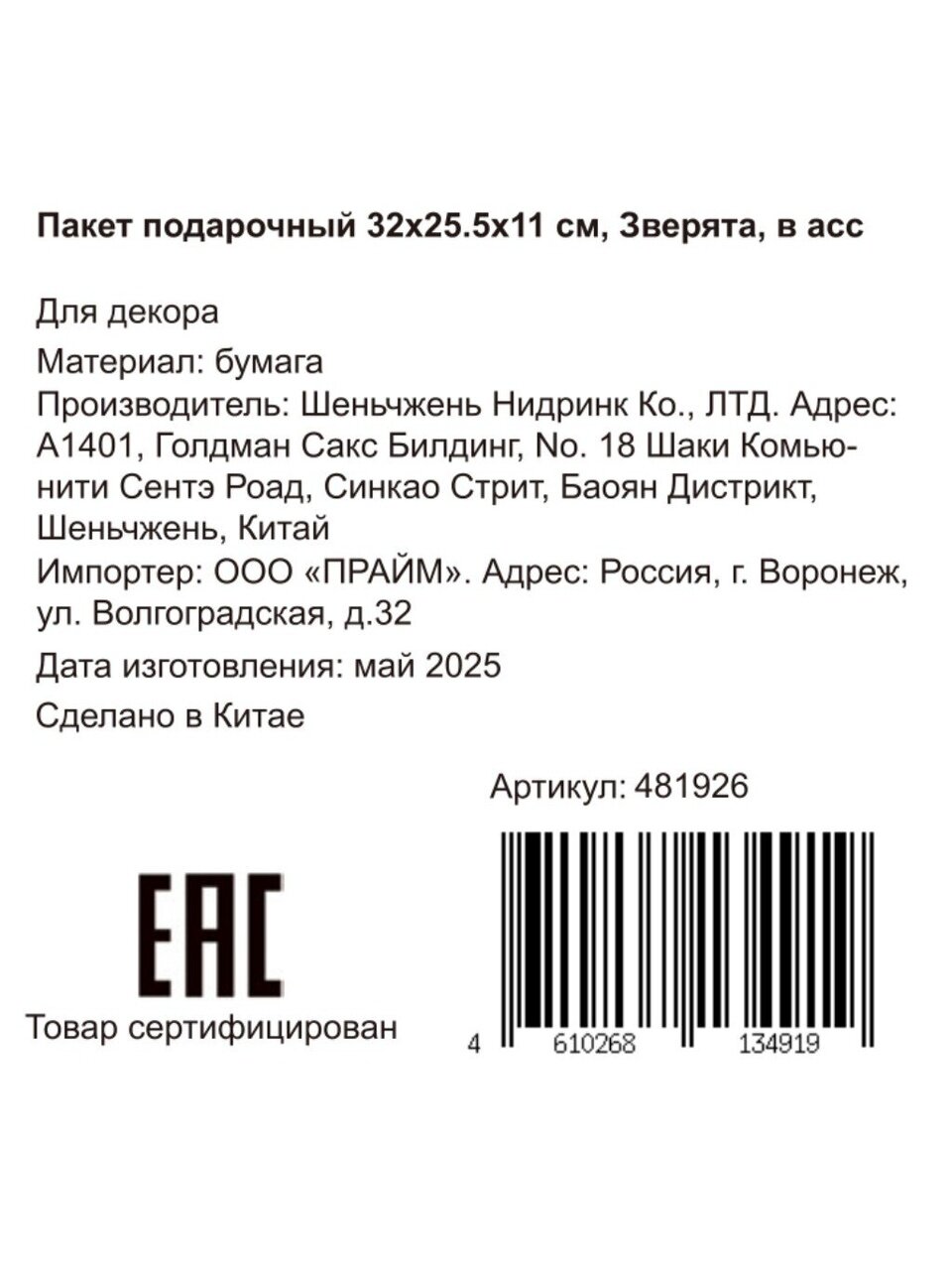 Вы можете приобрести «Пакет подарочный бумага, 25.5х11х32 см, в ассортименте, Зверята, Y4-8824» и другие товары в нашем интернет-магазине в Ярославле по низким ценам и с бесплатным самовывозом.