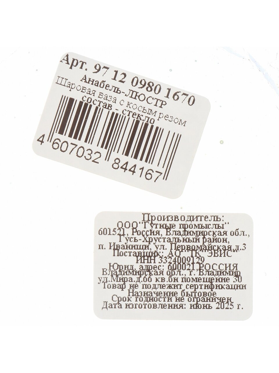 Ваза стекло, настольная, 16х14 см, Evis, Анабель-Люстр, 1670, шаровая