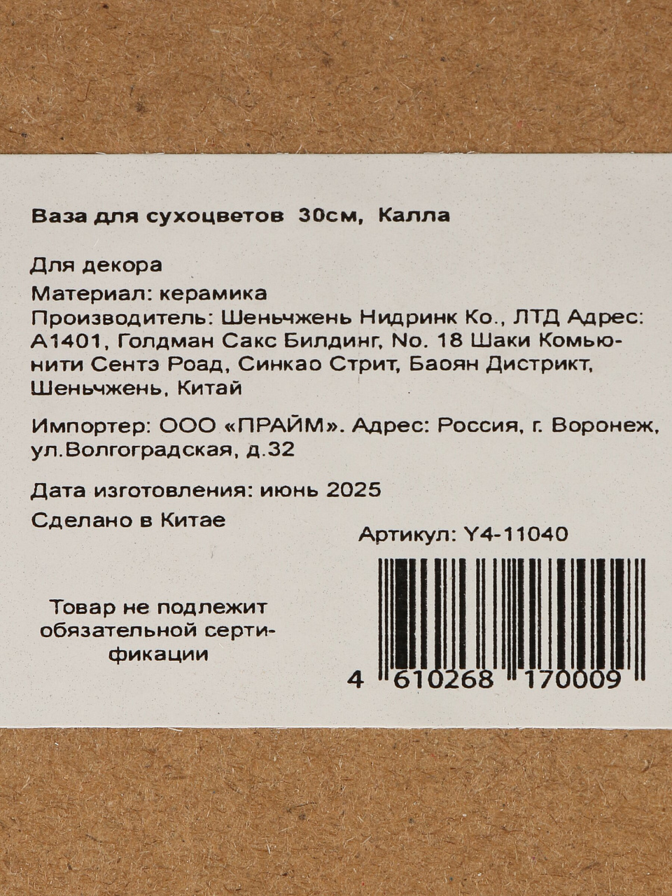 Вы можете приобрести «Ваза для сухоцветов керам, настольная, 30 см, Калла, бел, Y4-11040» и другие товары в нашем интернет-магазине в Железногорске по низким ценам и с бесплатным самовывозом.