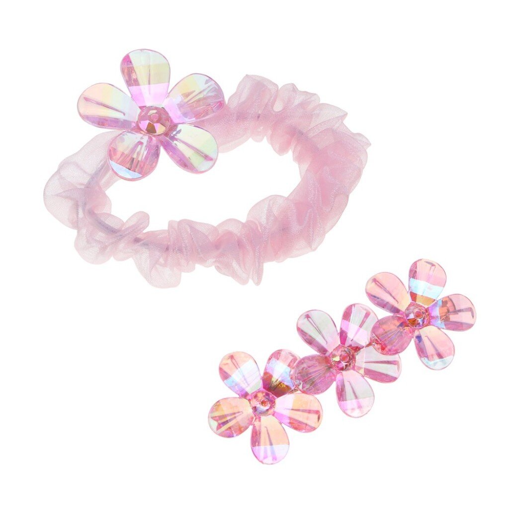 В комплекте резинка диаметром 6 см и заколка длиной 5.5 или 6 см, что подходит для большинства детских причёсок.