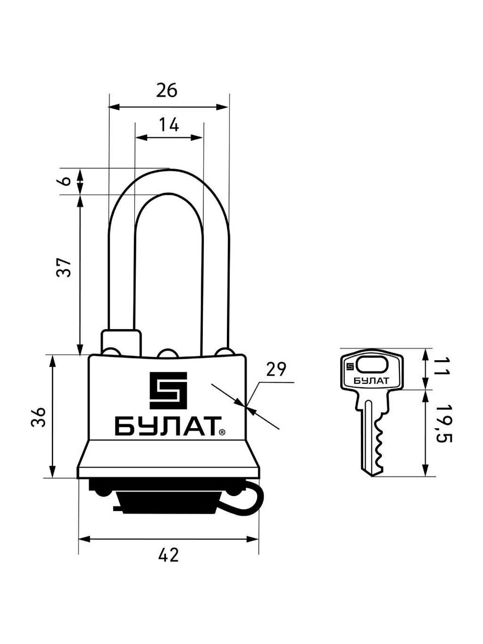 Конструкция замка повышает стойкость к взлому, а закаленная дужка снижает вероятность её распила. Корпус изготовлен из стали, что гарантирует долгий срок службы.